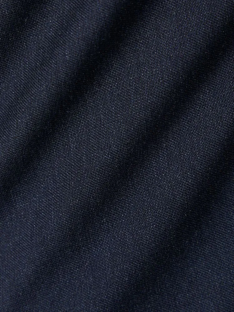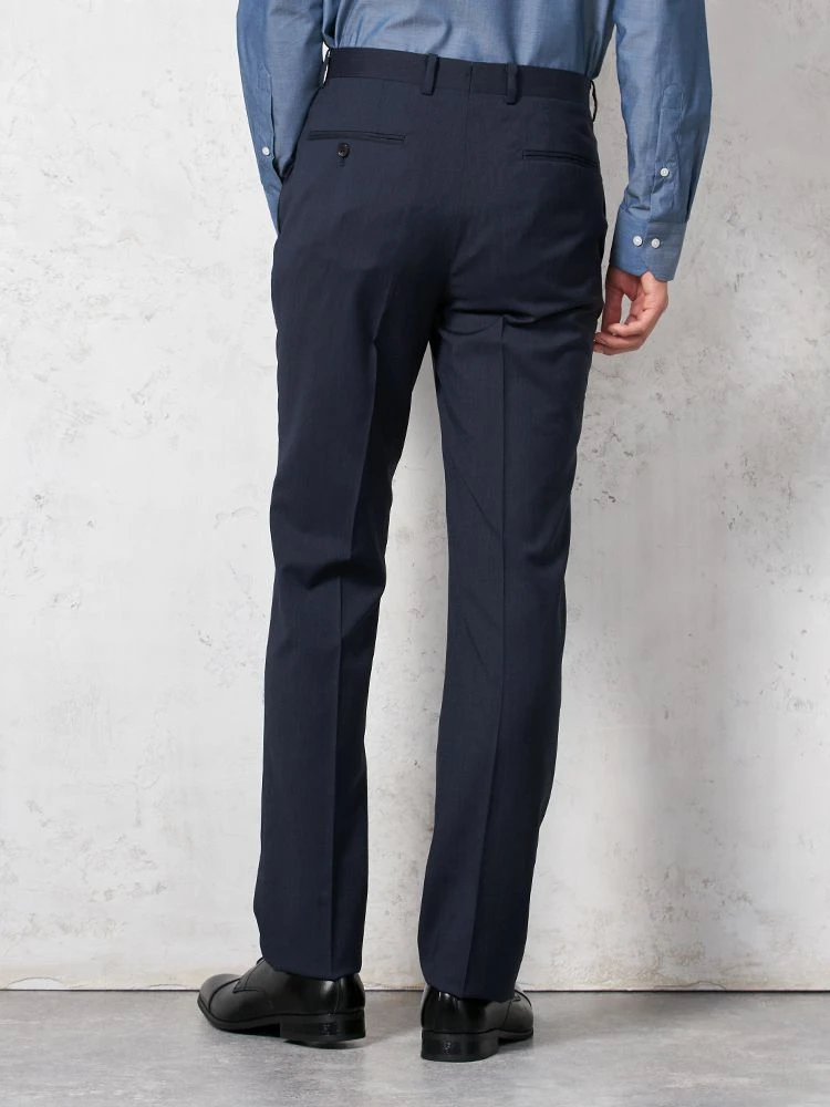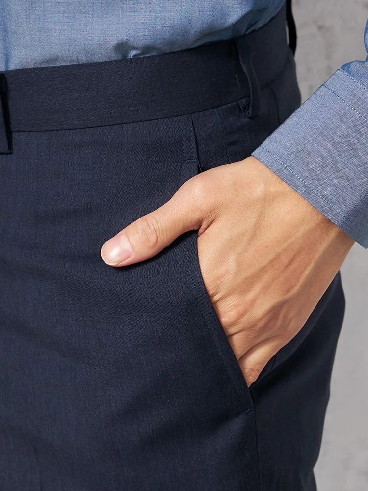 パンツの腰回りに生地の折り込みがなく、スッキリとしたシルエットを実現します。シンプルで洗練された印象を与え、すっきりとした着こなしが可能です。