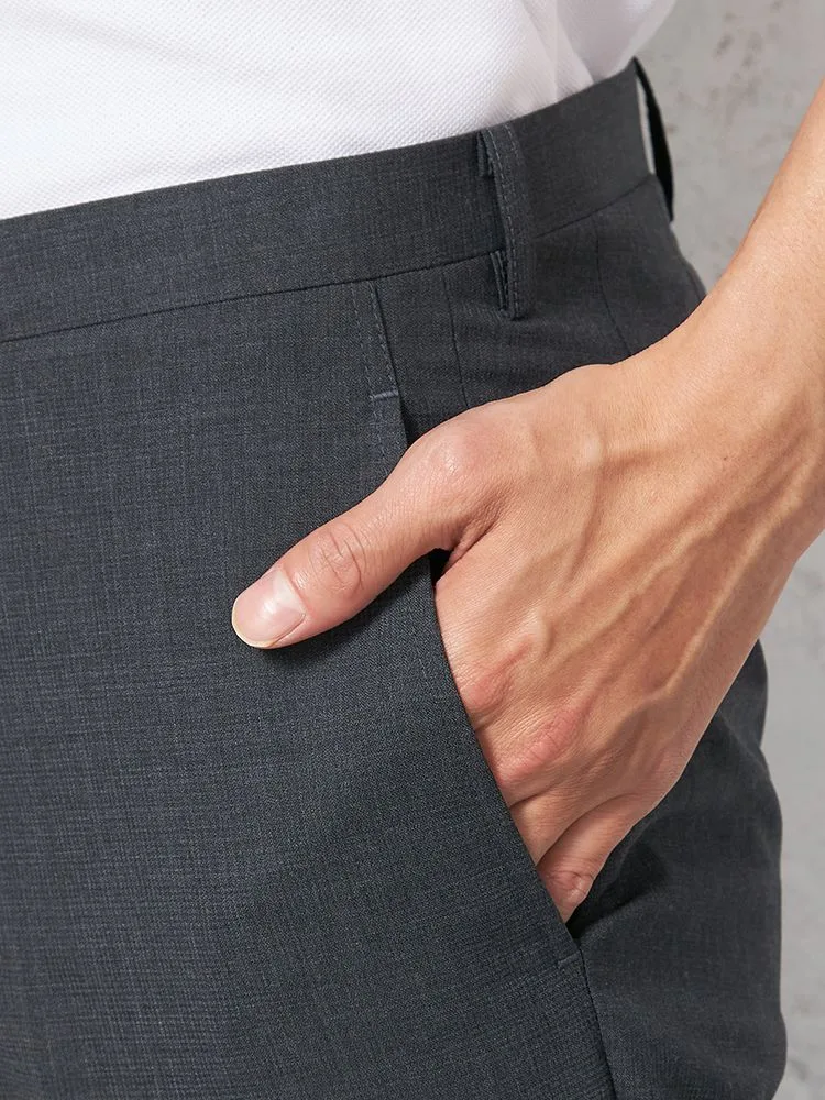 【ウォッシャブル】パンツ スラックス ノータック スリム 織柄無地 nero【スリムデザイン】