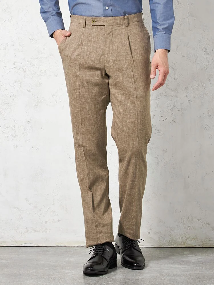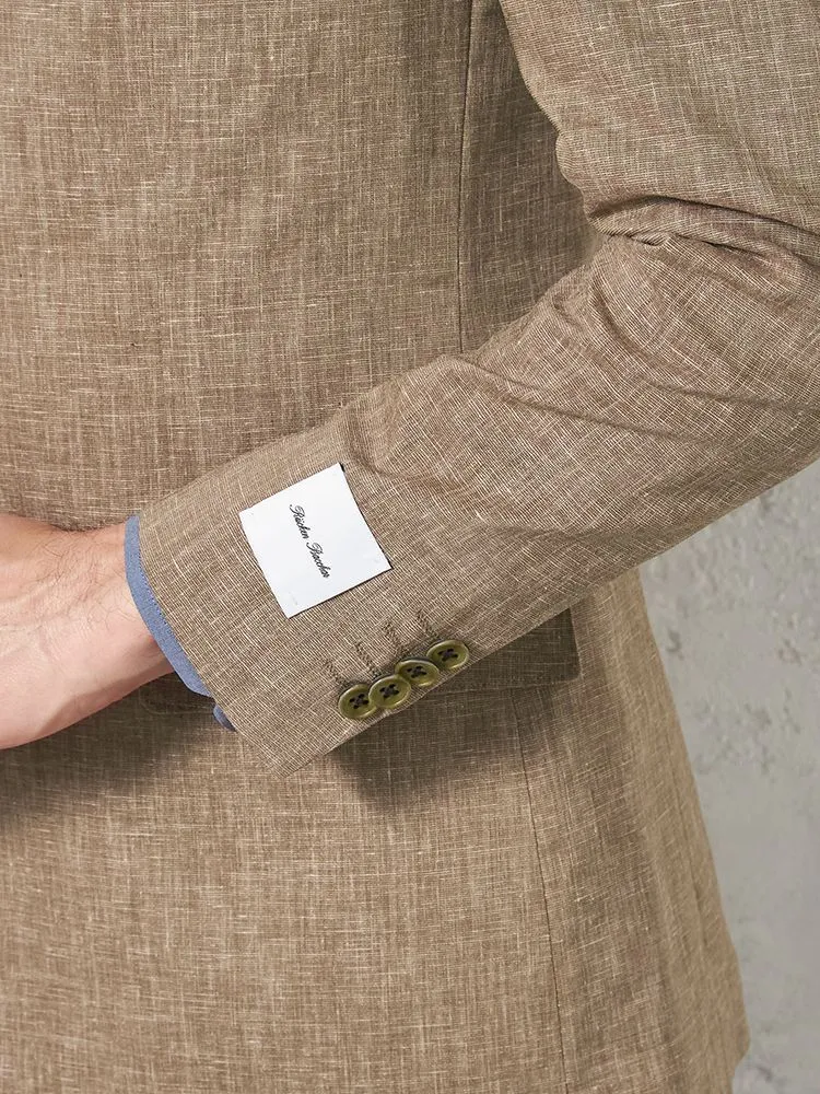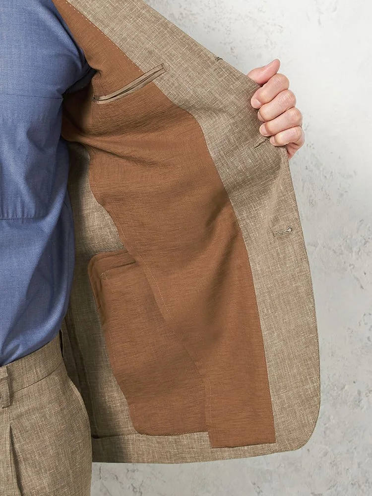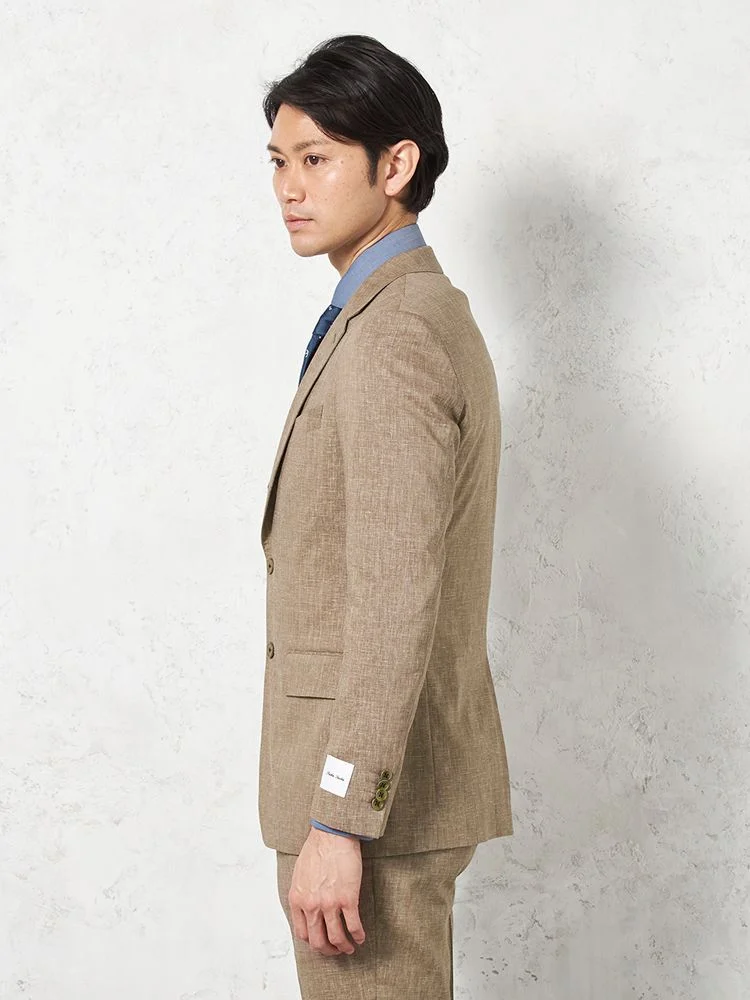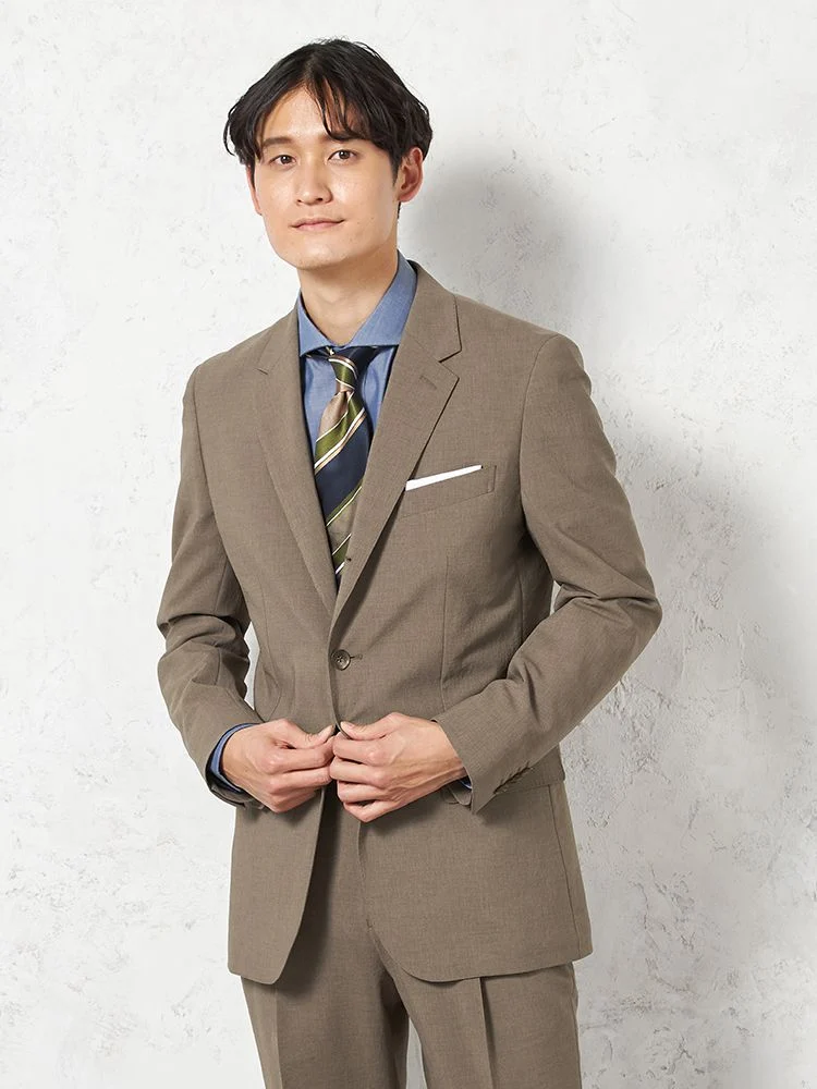 【パンツウォッシャブル】スーツ 段返り3つボタン 尾州素材 麻混 ライトフィール ストレッチ 織柄無地 リッケンバッカー 春夏(ブラウン)