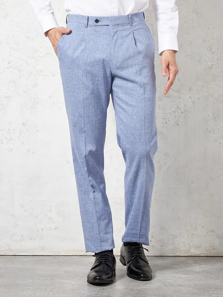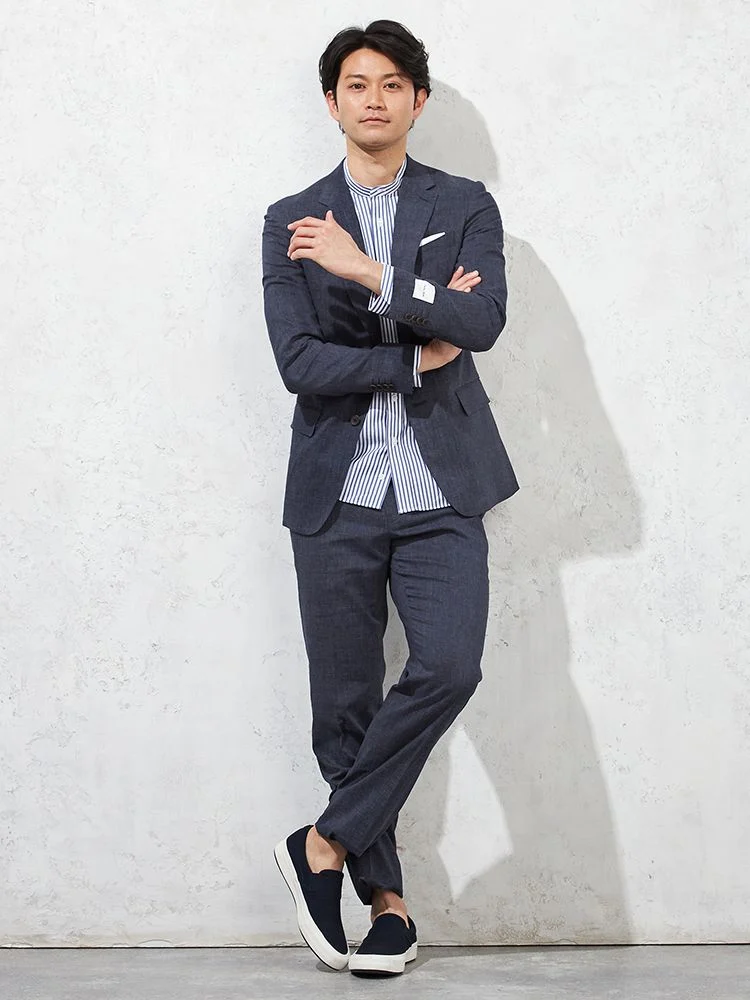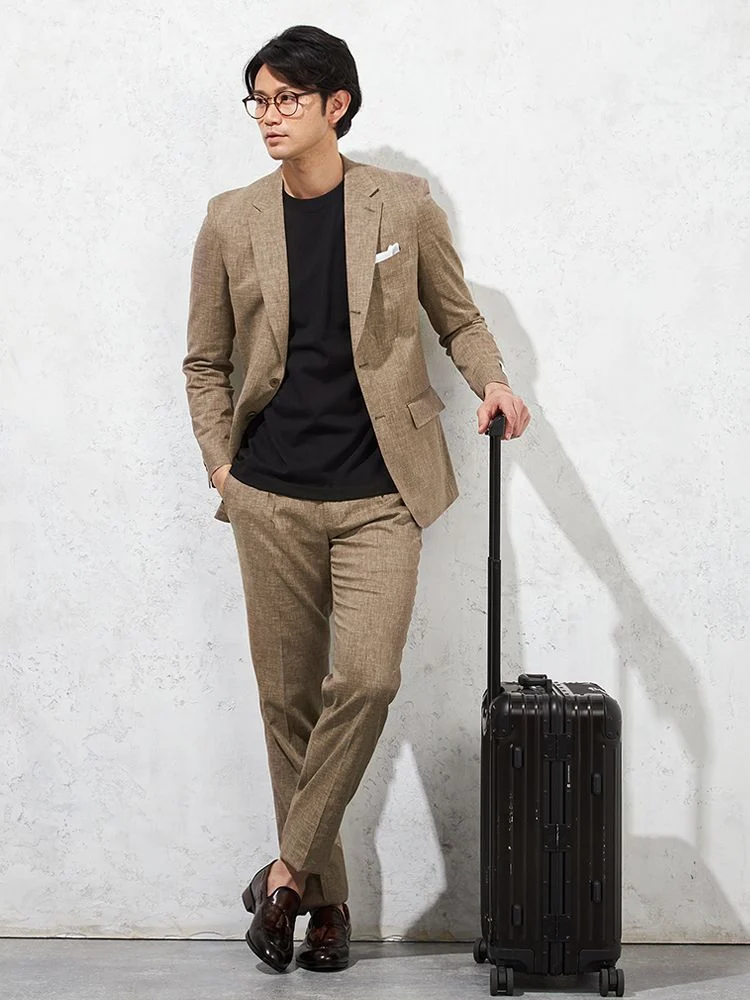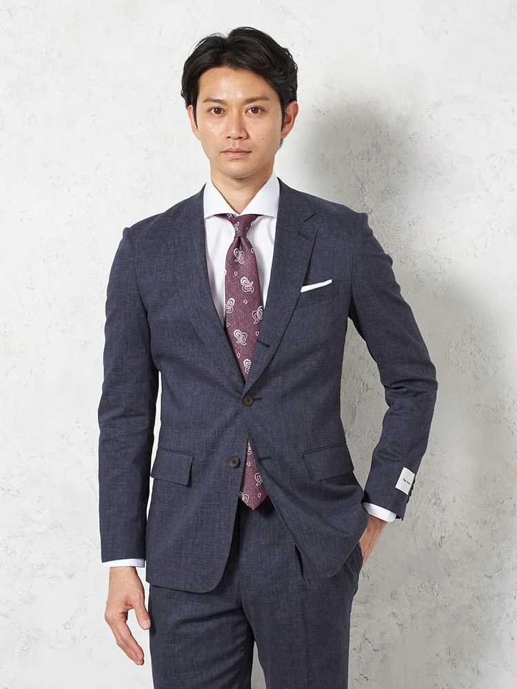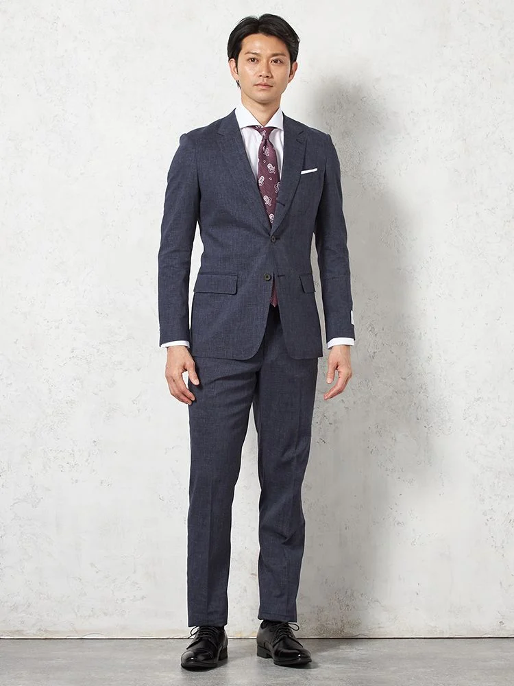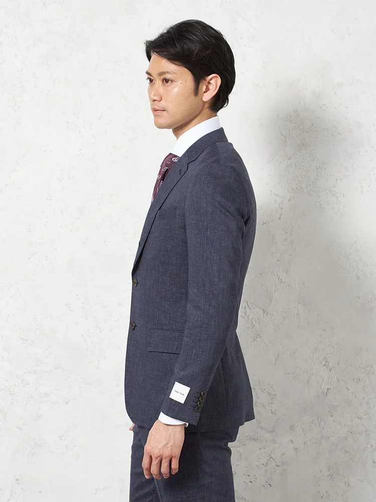 尾州産リネン混ストレッチ素材を使用した、ライトフィール仕立てのスーツです。