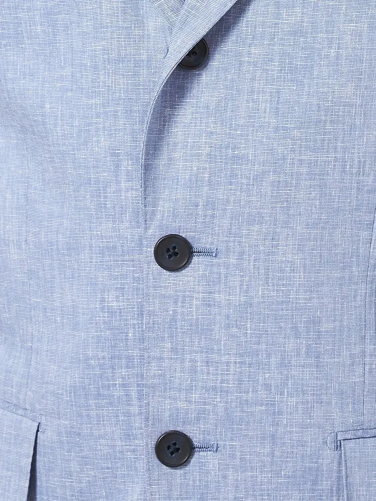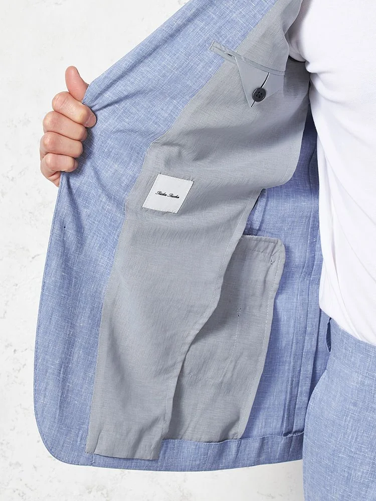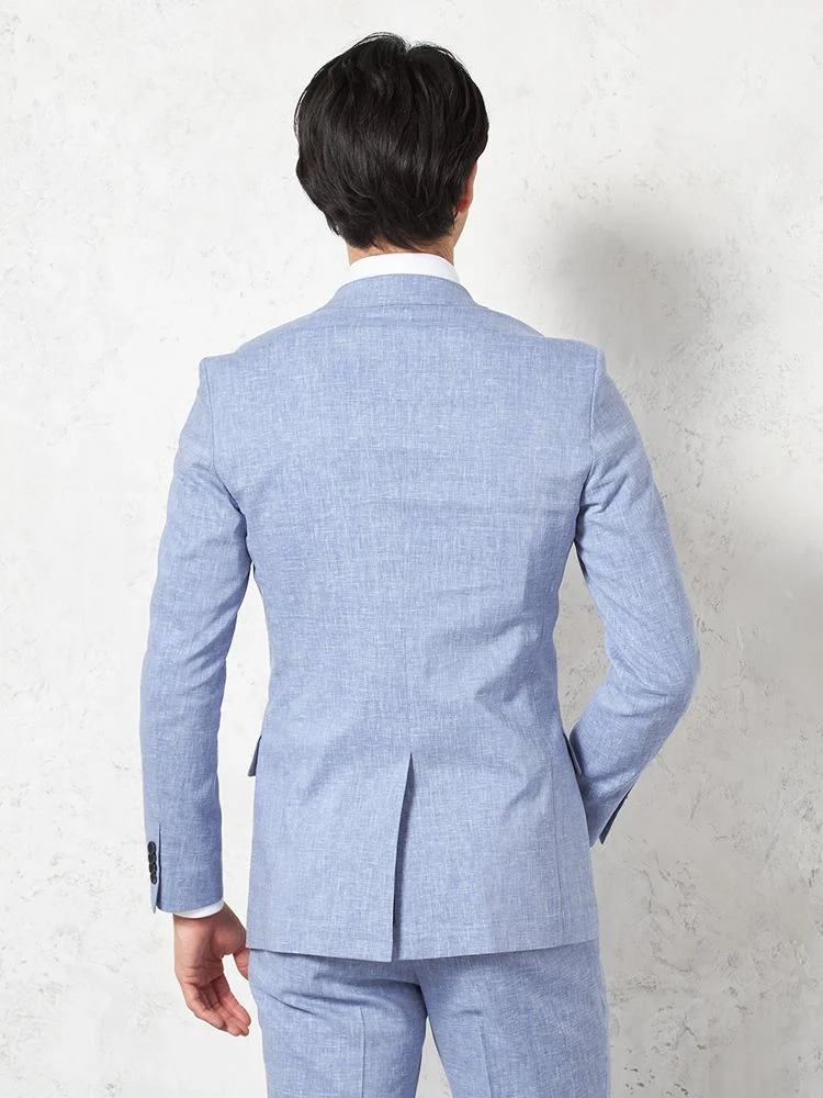 【パンツウォッシャブル】スーツ段返り3つボタンリネンライクライトフィールドライタッチ軽量ブルーリッケンバッカー春夏