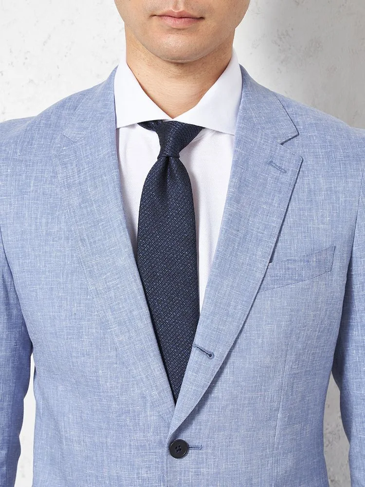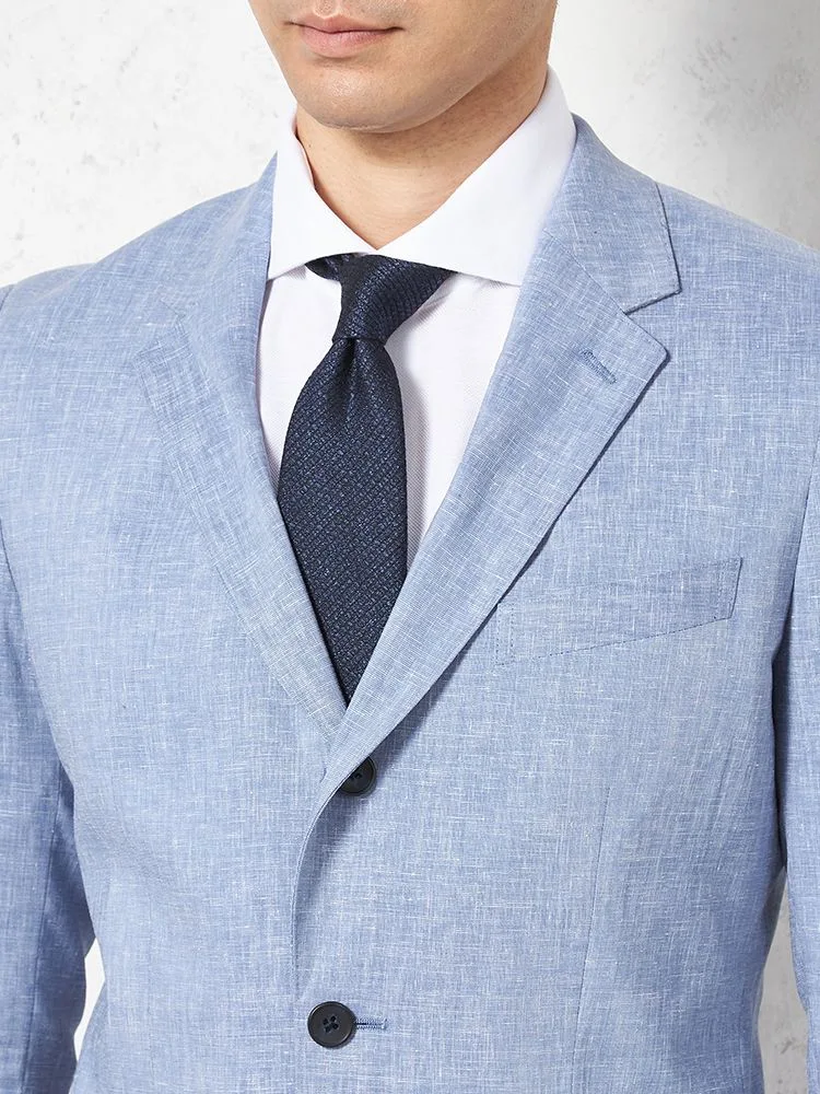 【パンツウォッシャブル】スーツ 段返り3つボタン リネンライク ライトフィール ドライタッチ 軽量 ブルー リッケンバッカー 春夏