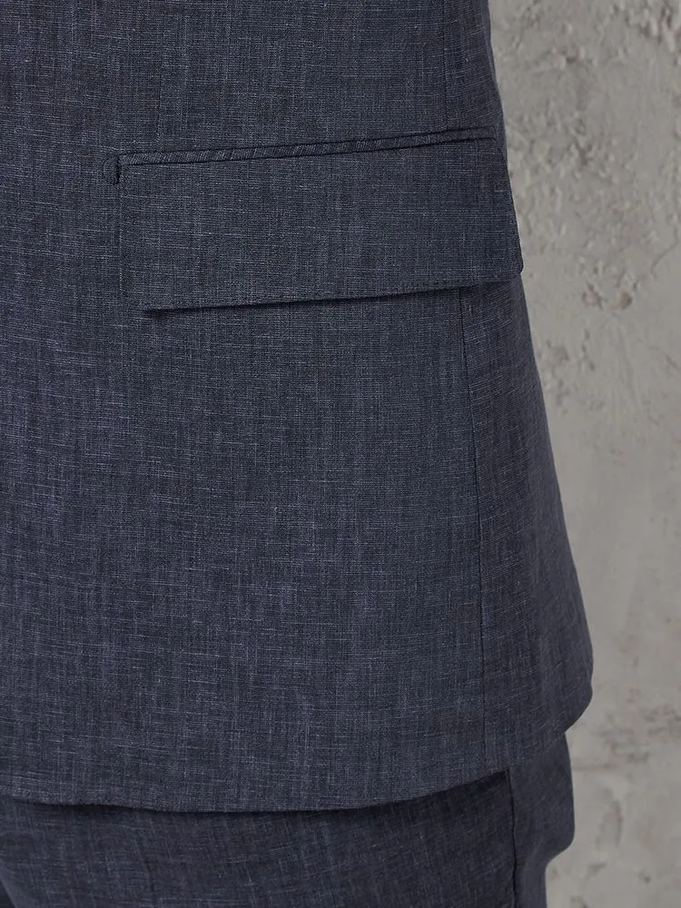 【パンツウォッシャブル】スーツ段返り3つボタンリネンライクライトフィールドライタッチ軽量ネービーリッケンバッカー春夏