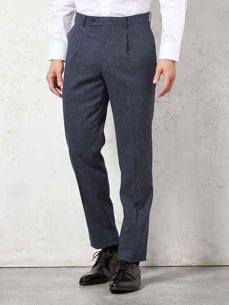 スラックスはワンタック入りで腰回りにゆとりがあります。