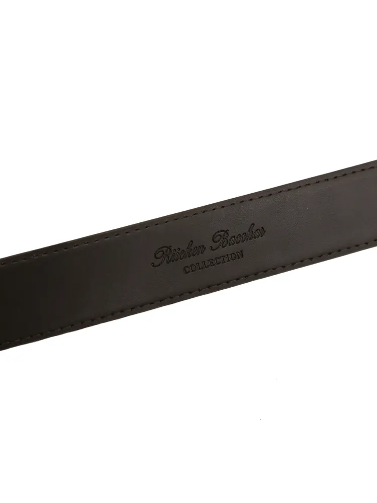 【牛革】メンズベルト ビジネス 35mm幅 角型美錠 スムース リッケンバッカー 通年(D.ブラウン)