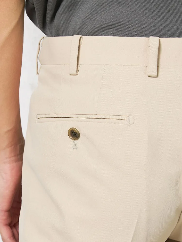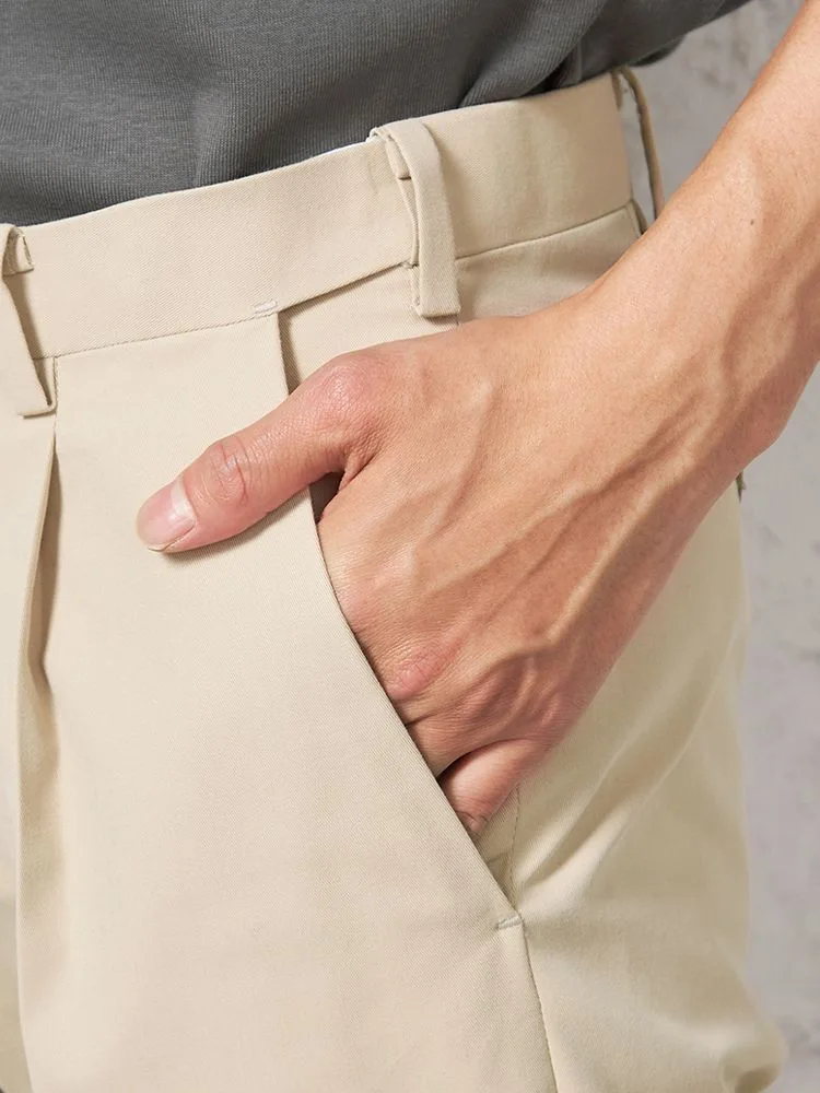 【サスビズxRENU】パンツ チノパン ワンタック 軽量 防シワ(ハンドアイロン) ウエスト伸縮 無地 春夏(ホワイト)