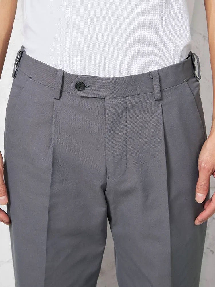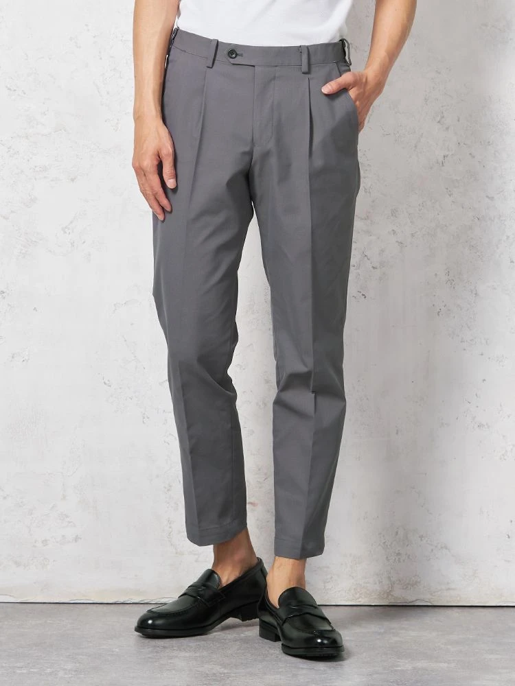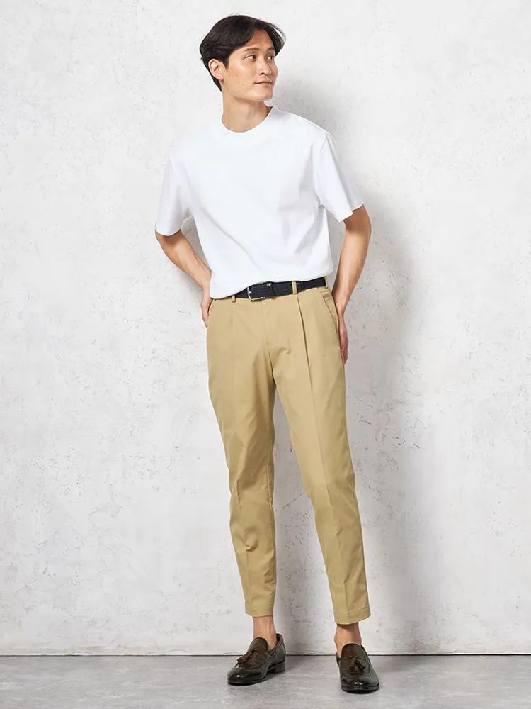 ウエストにタックを施した、程よくゆとりのあるテーパードパンツです。