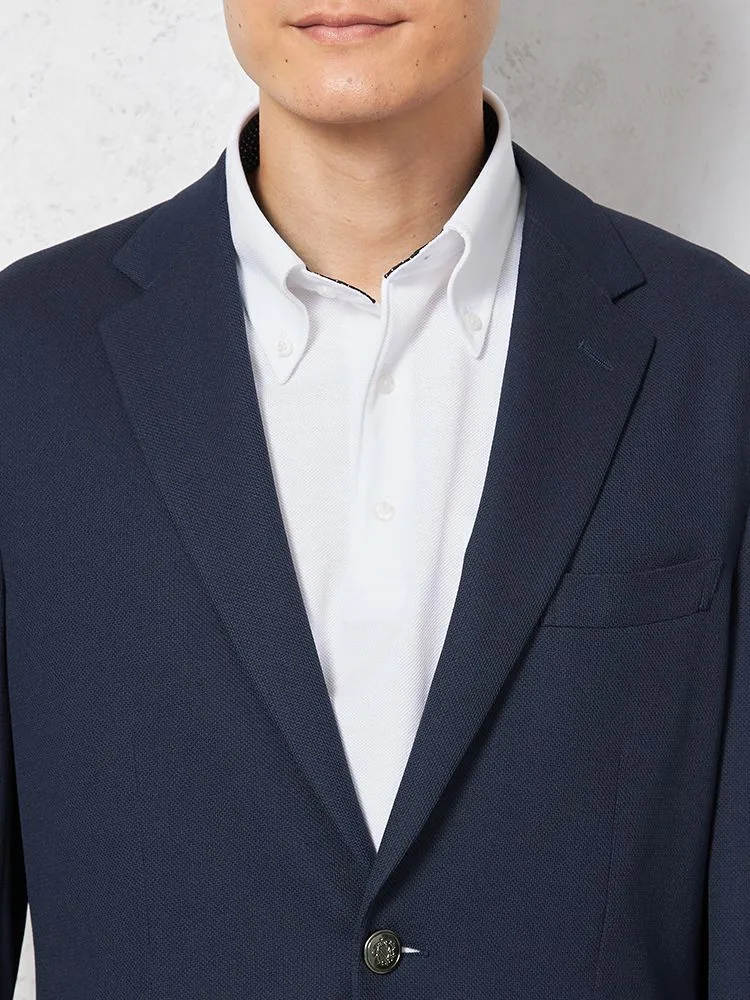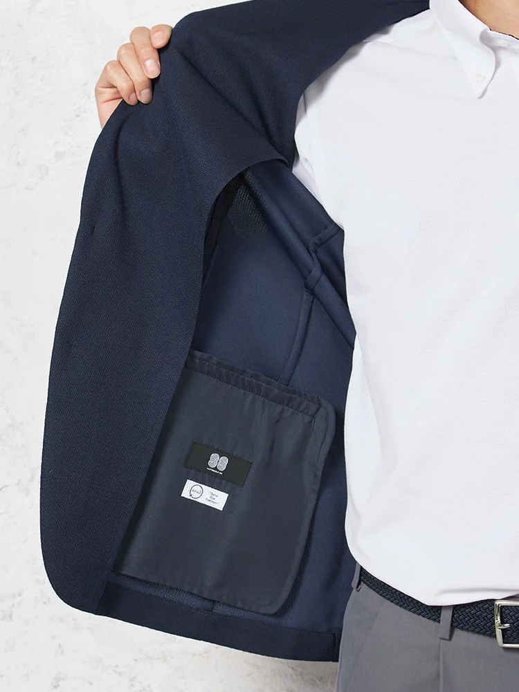 【i-Jacket-アイジャケット-】トリコットメッシュプリントジャケット2つボタンストレッチ高通気軽量ネイビー無地春夏