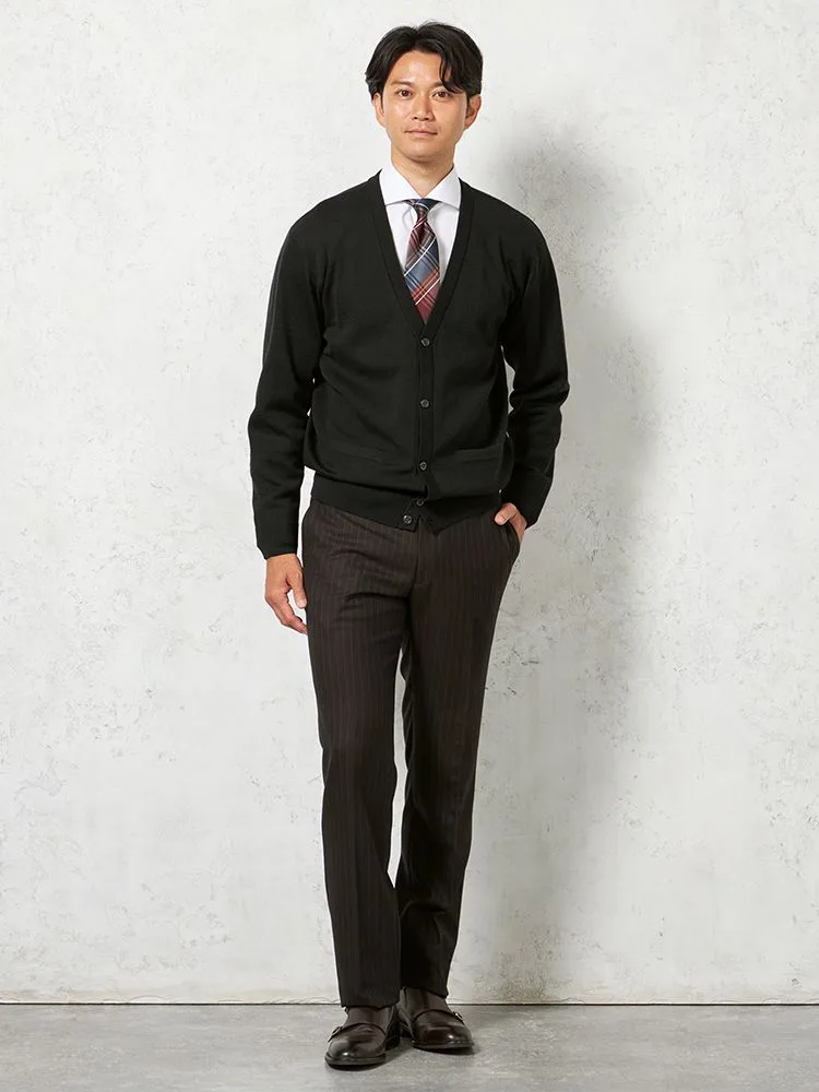 普段着としてはもちろん、毎日のビジネスコーデに活躍してくれるスタンダードなニットカーディガン。