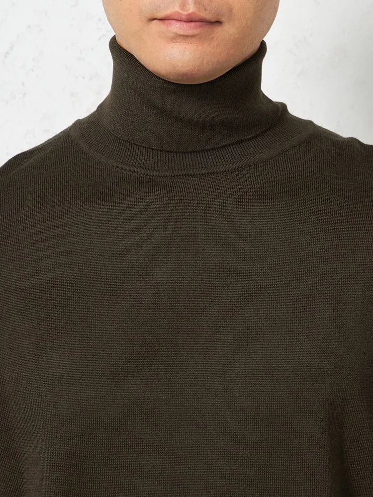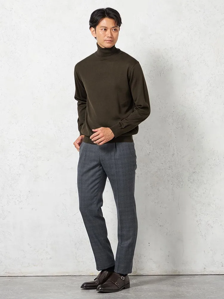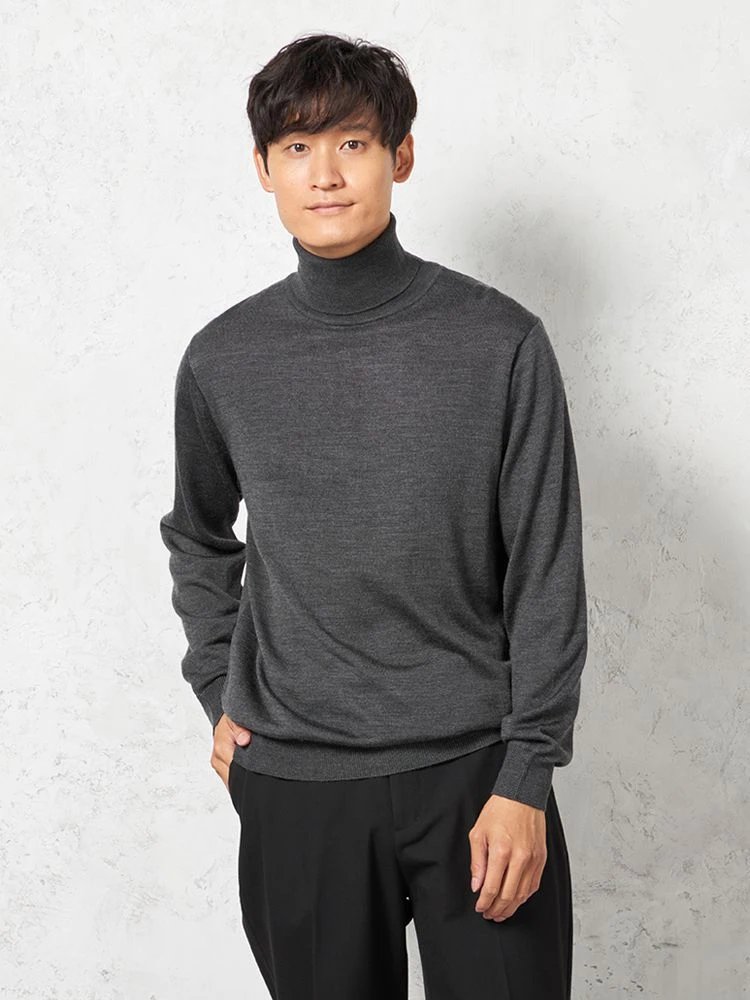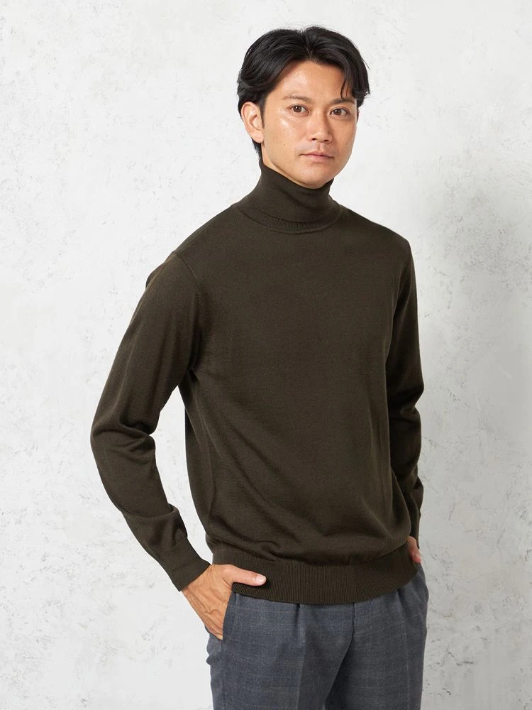 網目の細やかなハイゲージニットを使用した、無地天竺タートルネックセーターです。