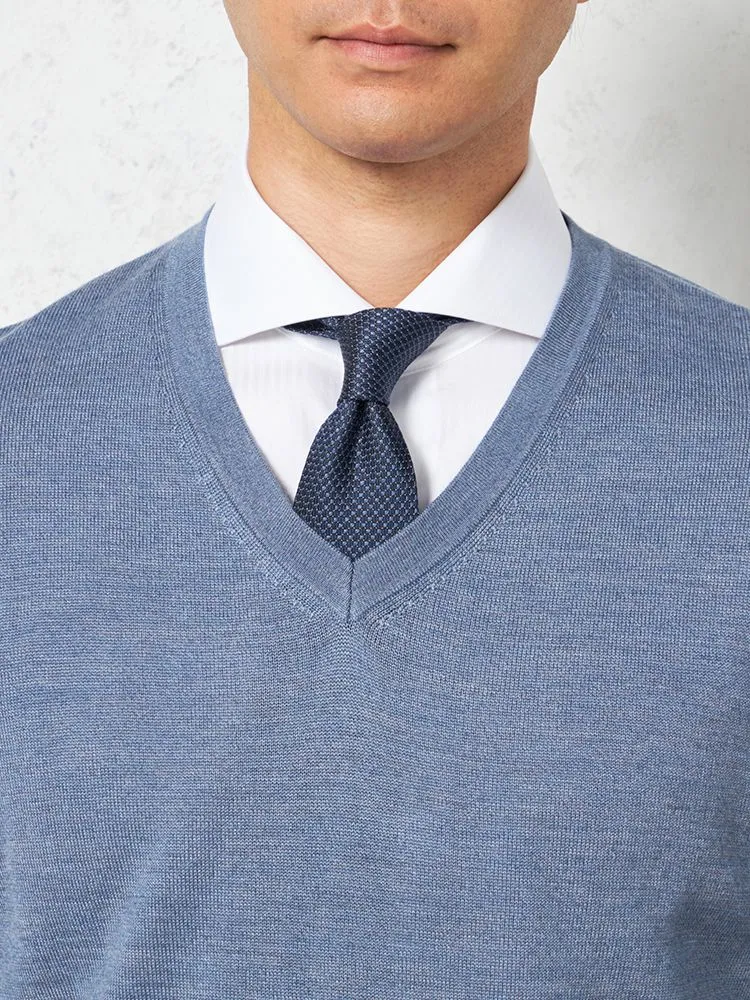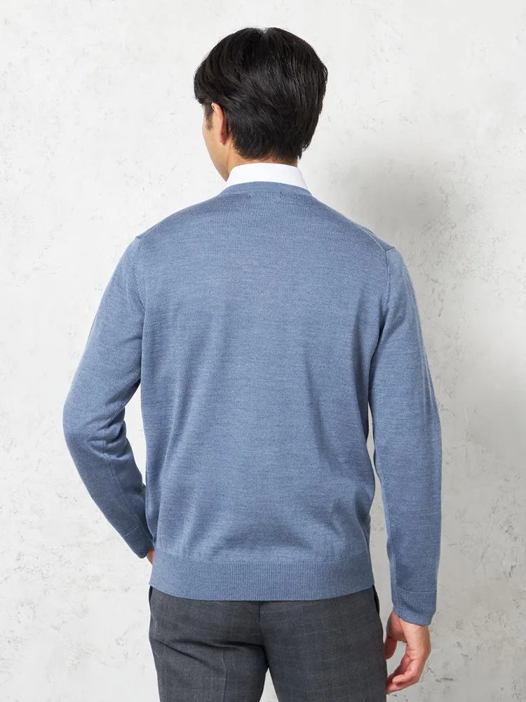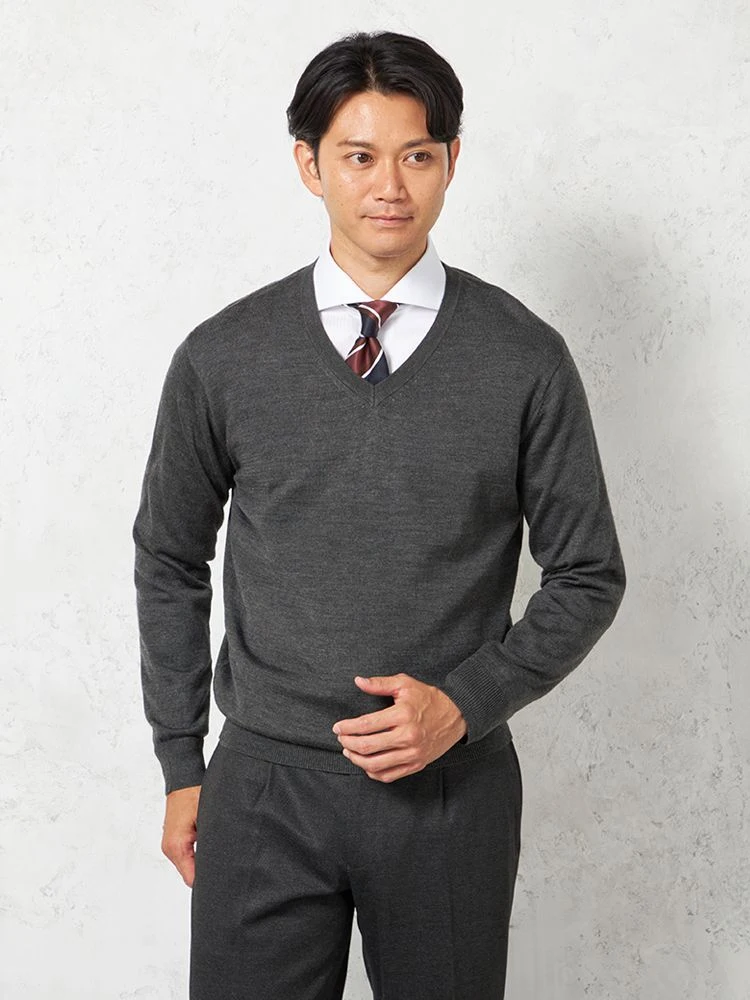 着回し力の高いベーシックな無地天竺Vネックセーターです。
