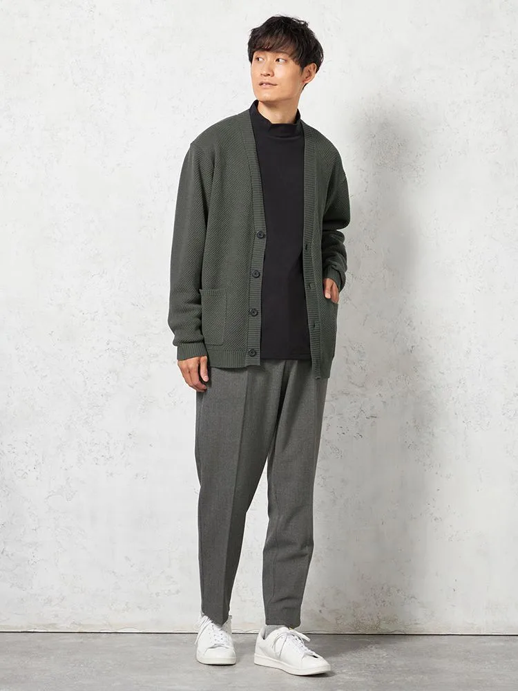 腰まわりにゆとりを持たせたテーパードパンツ。