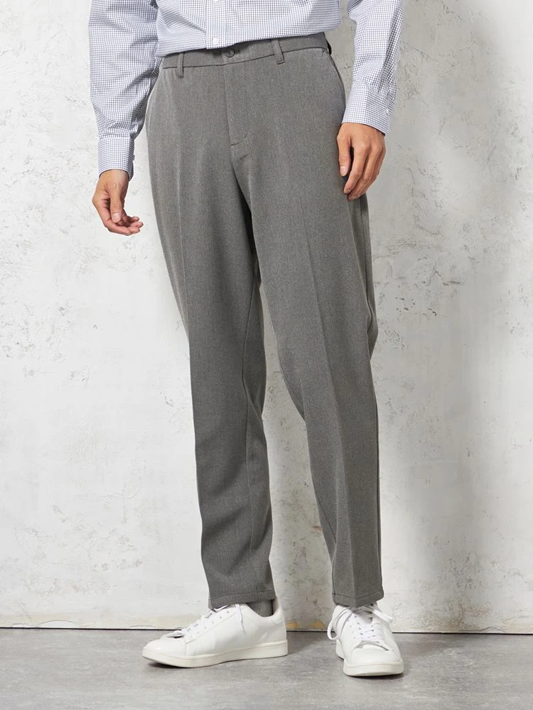 【ウォッシャブル】裏起毛 テーパードシルエット ストレッチ ウエストゴム 無地 カジュアルパンツ WALK PLUS 秋冬(L.グレー)