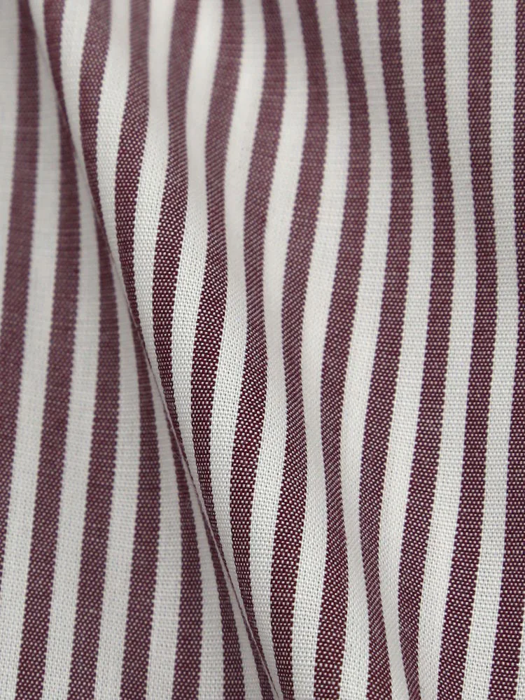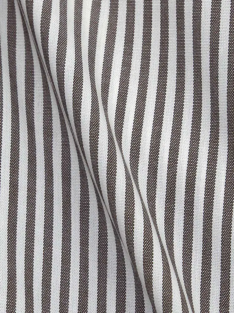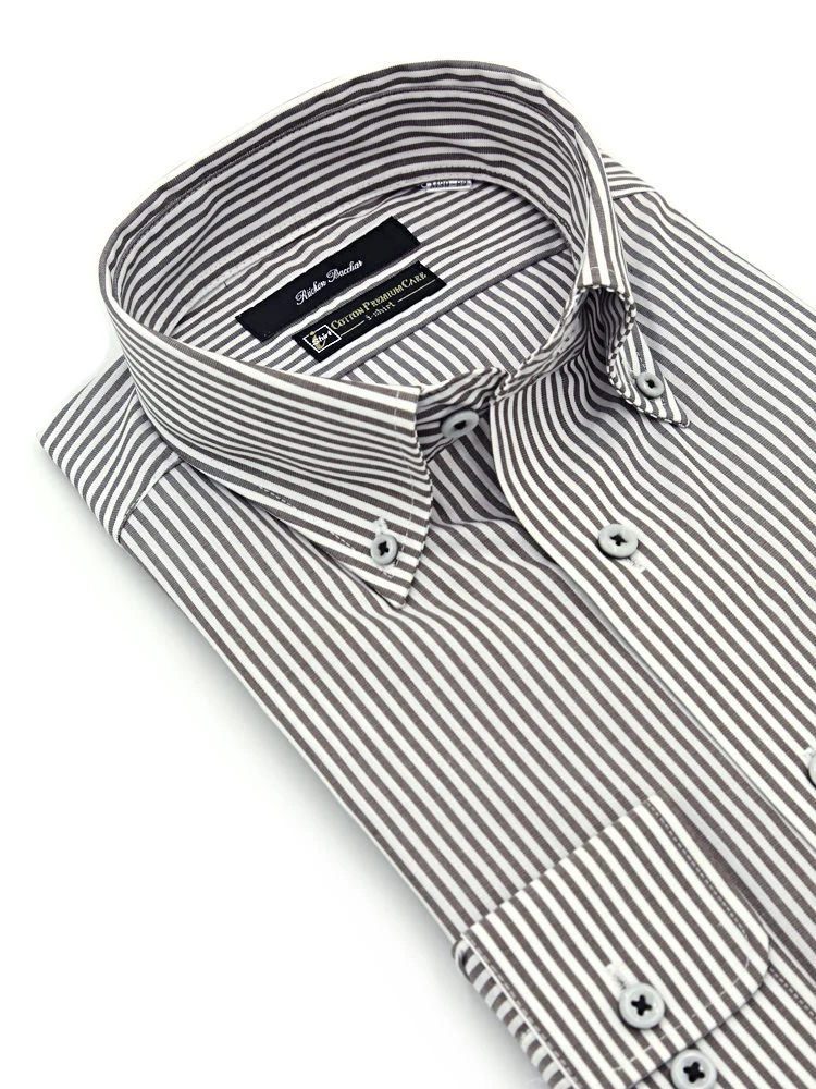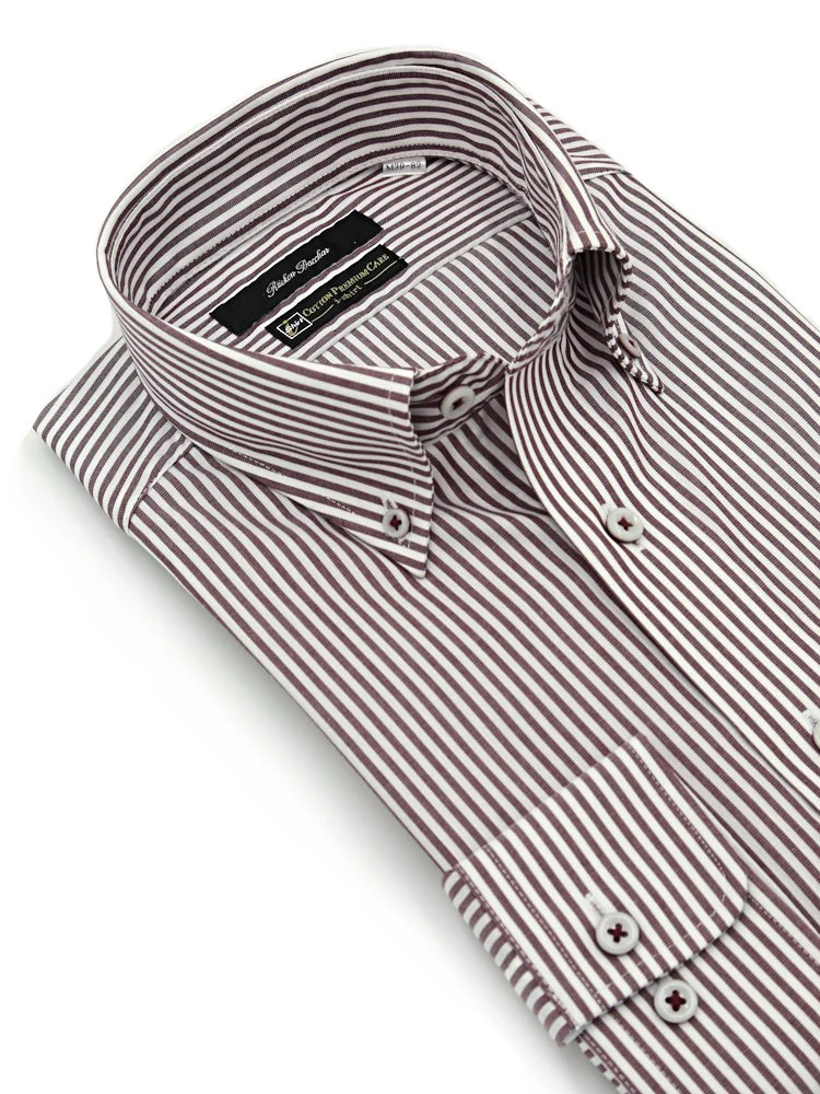 【形態安定】長袖 ワイシャツ ボタンダウン【コットンプレミアムケア】ストライプ リッケンバッカー 通年(ブラウン)