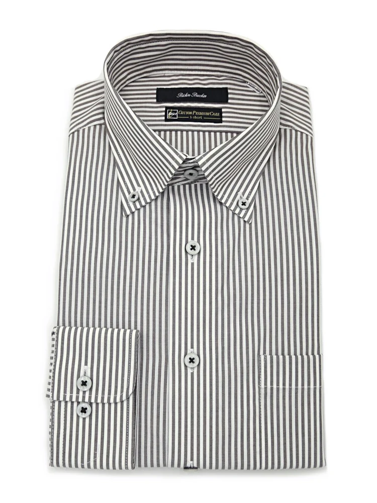 【高形態安定】長袖ワイシャツ ボタンダウン マルチファンクションシャツ ストライプ リッケンバッカー 通年