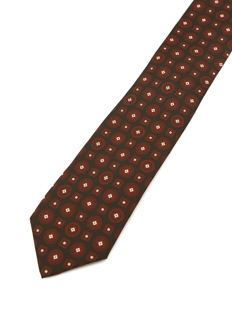 流行のプリントを使い、こなれ感とトレンド感を演出したネクタイです。