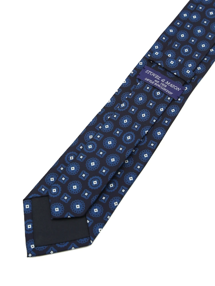 【シルク100%】ネクタイ レギュラー プリント柄 小紋 S&M BLUE LABEL 秋冬(ネイビー)