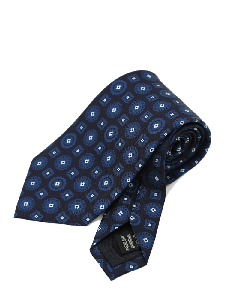 【シルク100%】ネクタイ レギュラー プリントタイ 小柄 S&M BLUE LABEL