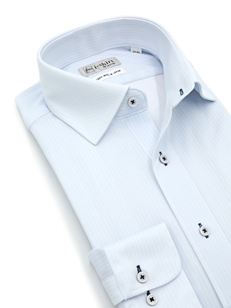 【完全ノーアイロン】長袖アイシャツクレリックセミワイドストライプワイシャツi-shirt通年