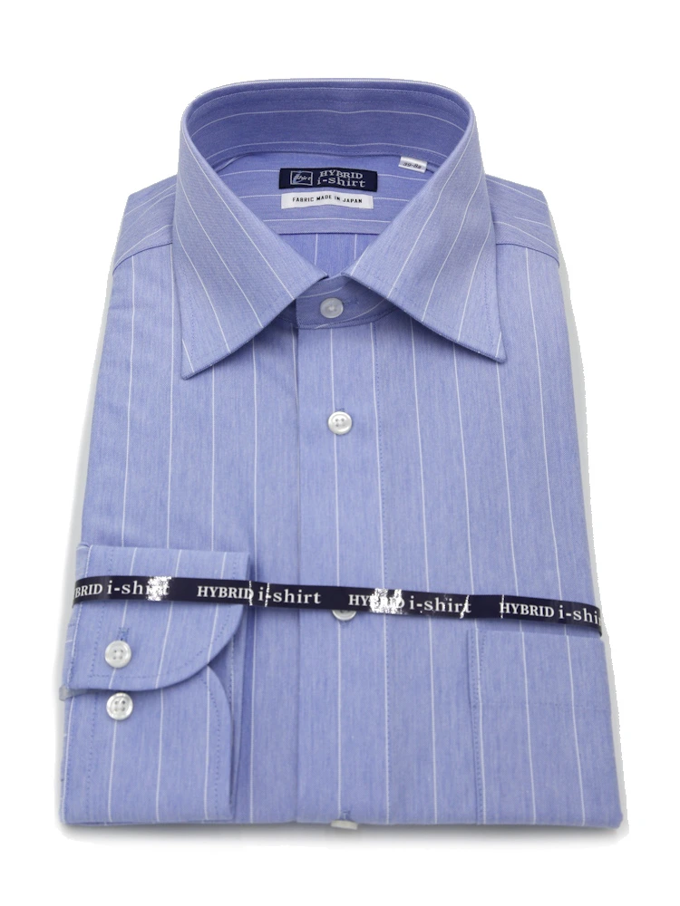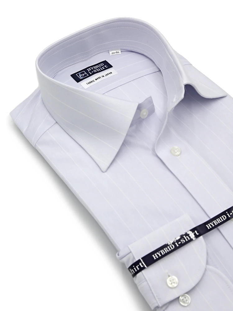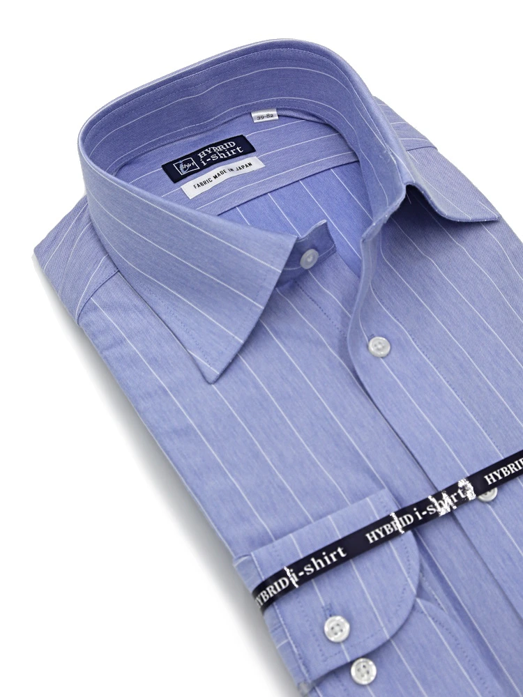 【ハイブリッドアイシャツ】長袖ワイシャツセミワイド綿混素材形態安定ストライプi-shirt通年