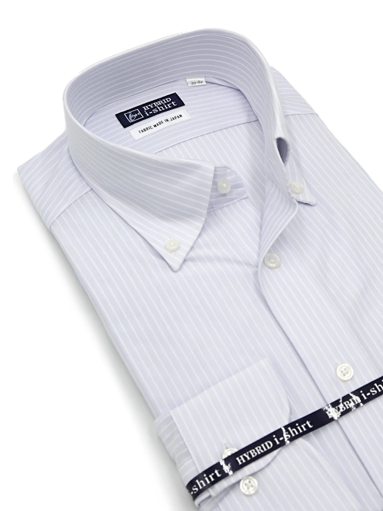 【ハイブリッドアイシャツ】長袖ワイシャツボタンダウン形態安定ストレッチマイクロストライプ通年