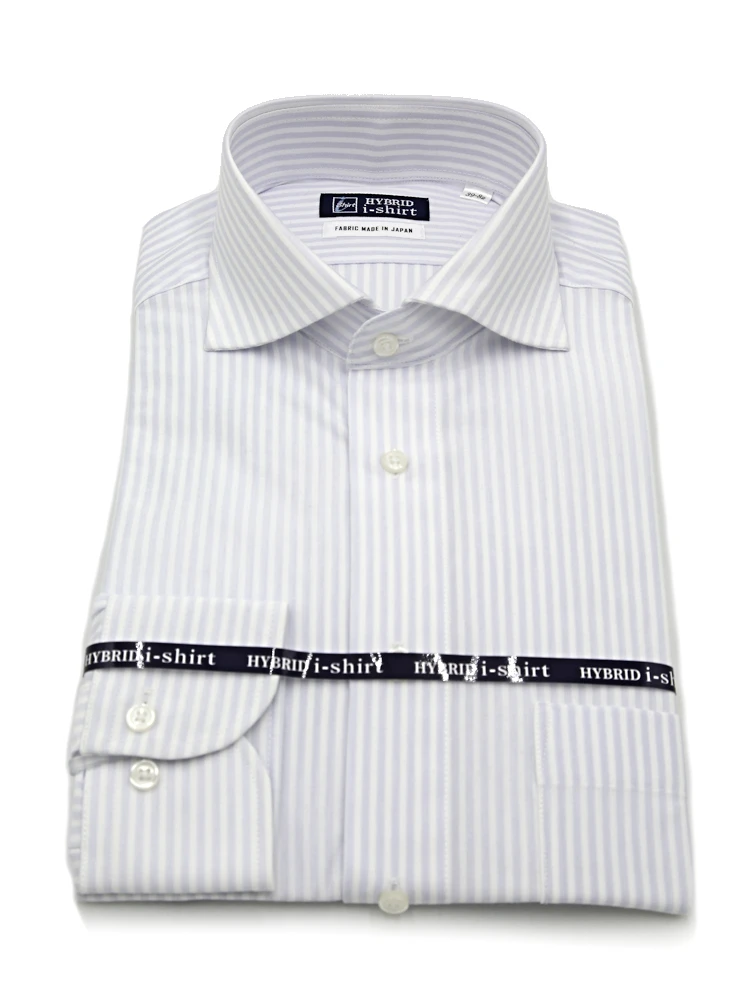 【ハイブリッドアイシャツ】長袖ワイシャツカッタウェイ形態安定ストレッチロンドンストライプ通年