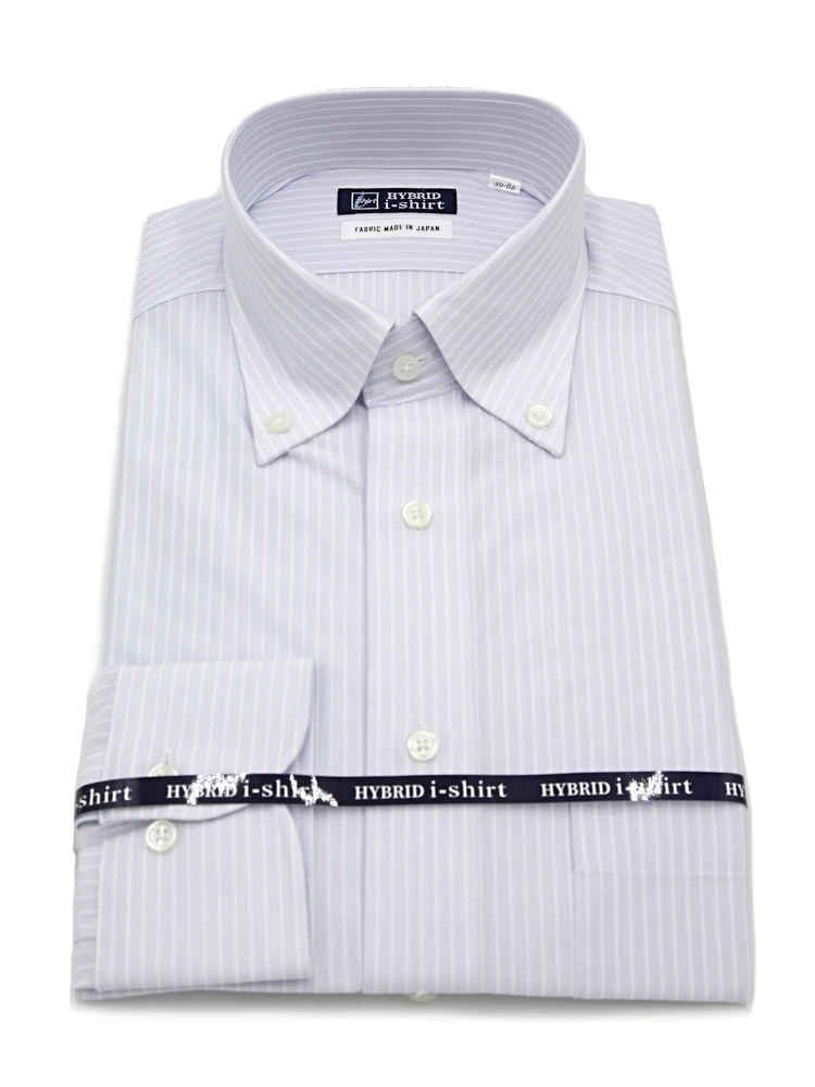 【ハイブリッドアイシャツ】長袖ワイシャツボタンダウン綿混素材形態安定ピンストライプi-shirt通年
