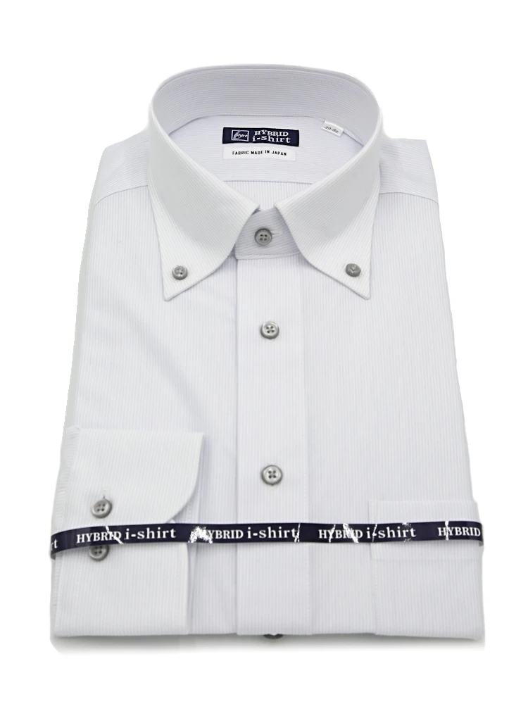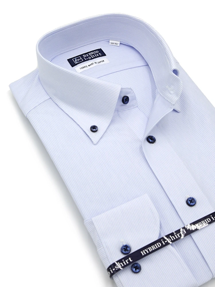 【ハイブリッドアイシャツ】長袖ワイシャツボタンダウン綿混素材形態安定ピンストライプi-shirt通年