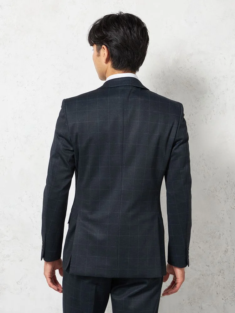 【上下ウォッシャブル】スーツ2つボタンウールライクチェックnero秋冬【スリムデザイン】