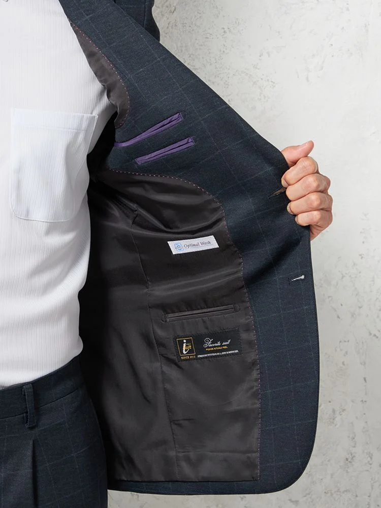 【ウール混】スーツ2つボタン尾州素材使用ニット素材ネイビーチェックS&MBLUELABEL【i-Suit-アイスーツ-】秋冬