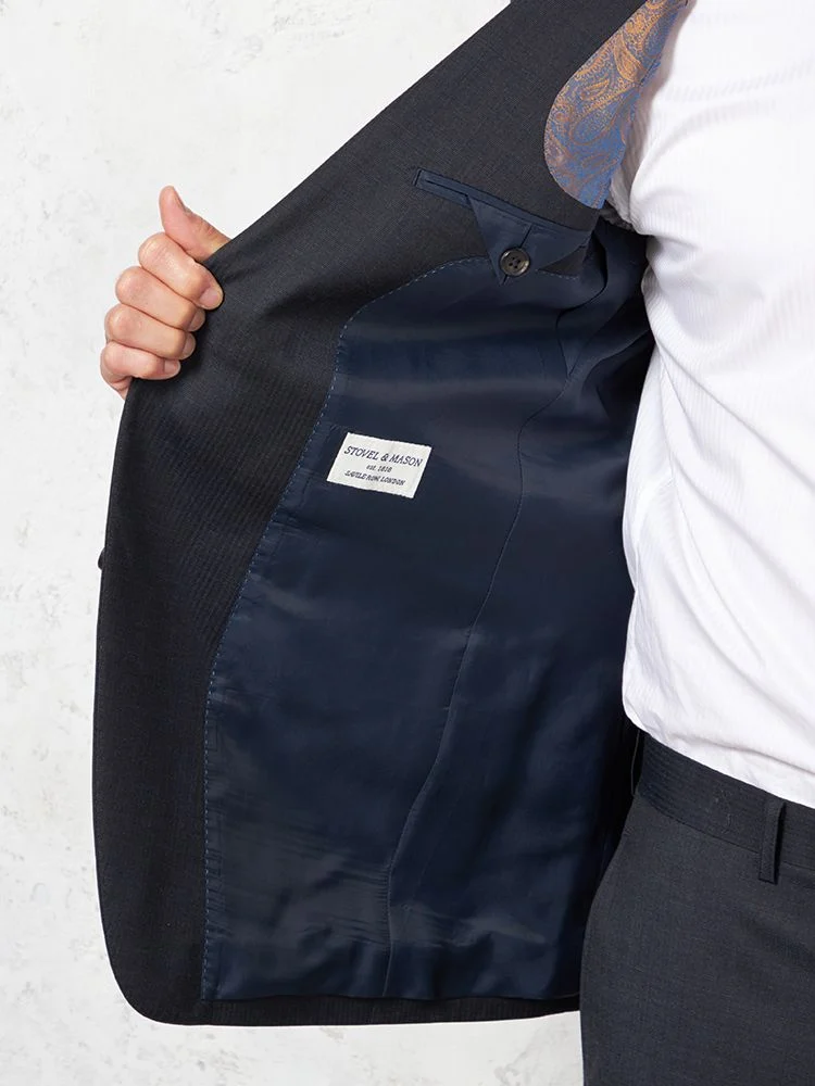 【ウール100%】スーツ2つボタン尾州生地ネイビーシャドウストライプSTOVEL&MASON