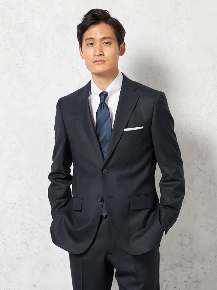 【ウール100%】スーツ2つボタン尾州SUPER110s素材ヘリンボンSTOVEL&MASON秋冬