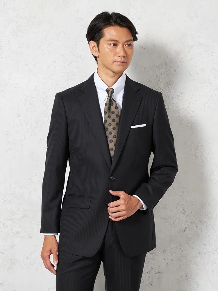 【即納】【WEB限定】スーツ2つボタンブラックシャドウストライプ上下ウォッシャブル3シーズン対応
