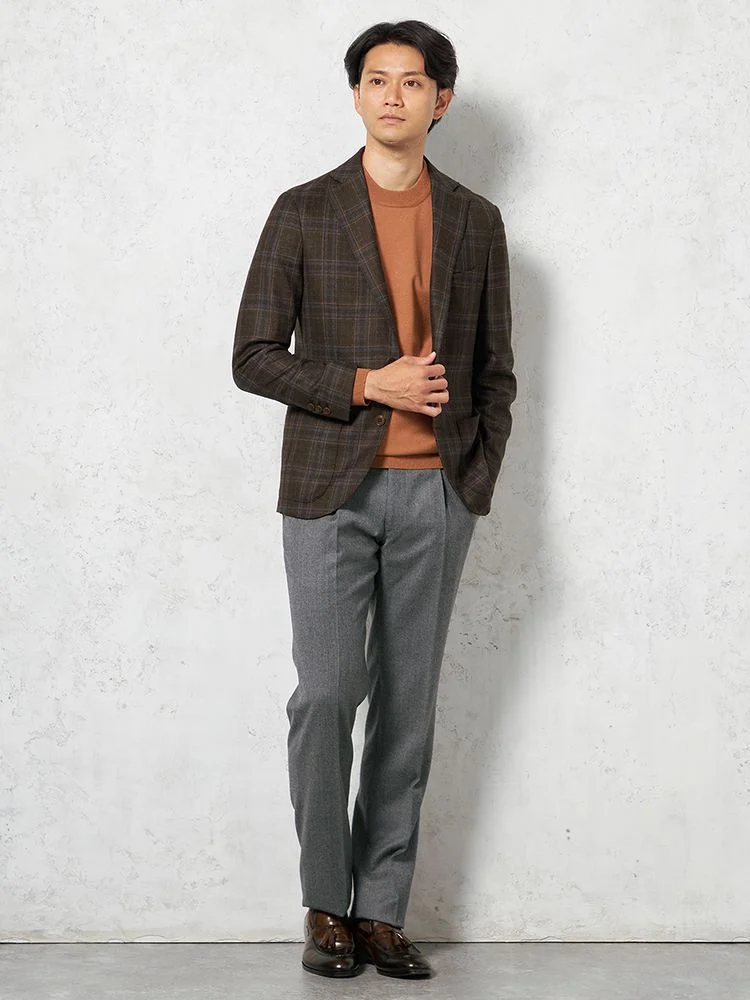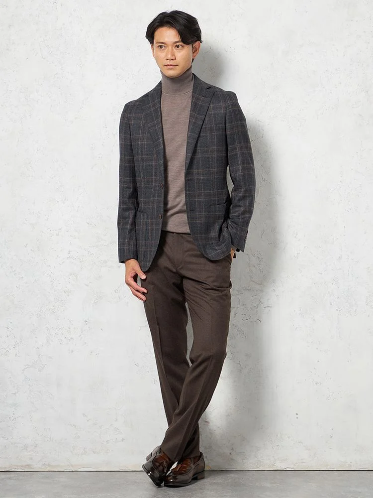 2つボタンのデザインで、クラシックなスタイルを演出。落ち着きと品のあるアイテムです。