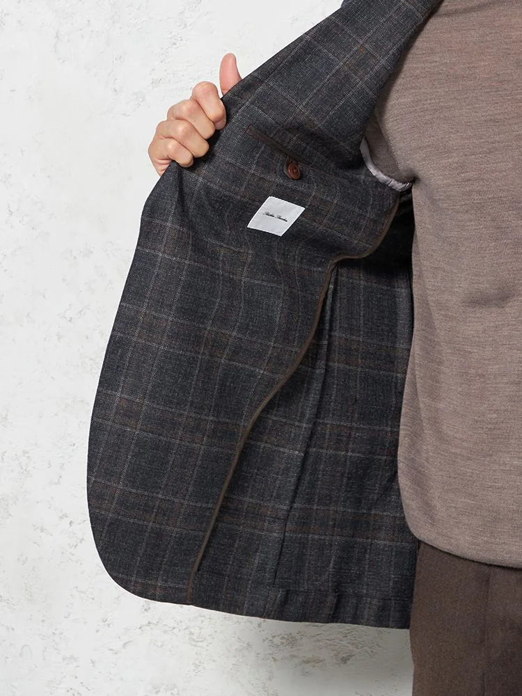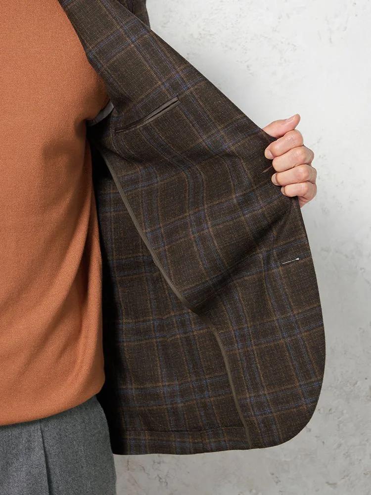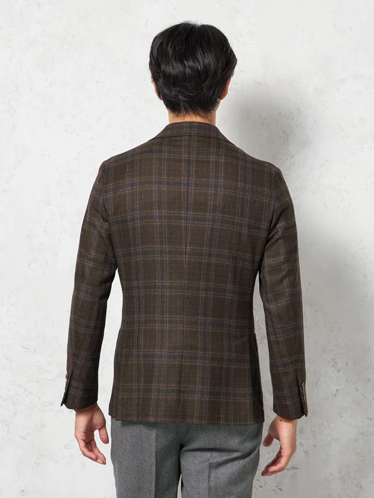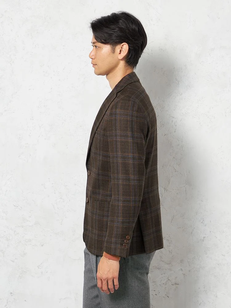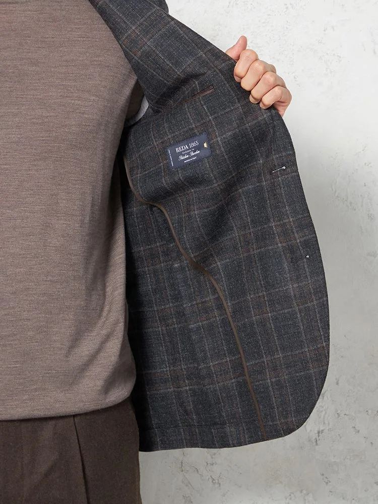 【ウール100%】ジャケット2つボタン【REDA】イタリアインポート素材軽量仕立てチェックブラウンRUCKENBACCHAR秋冬
