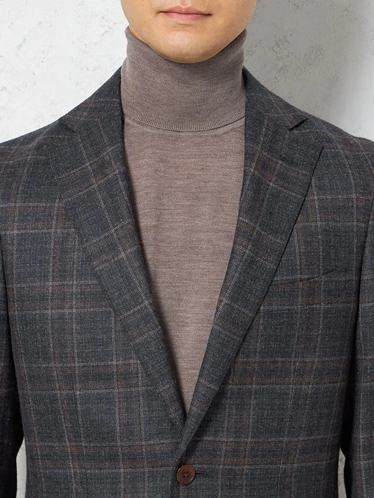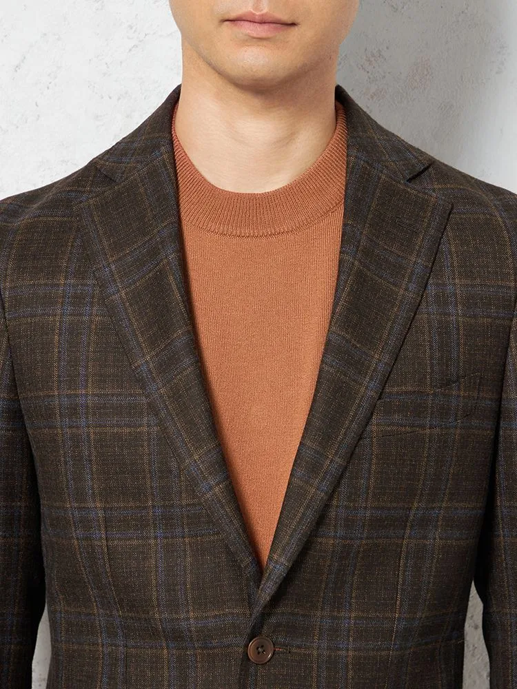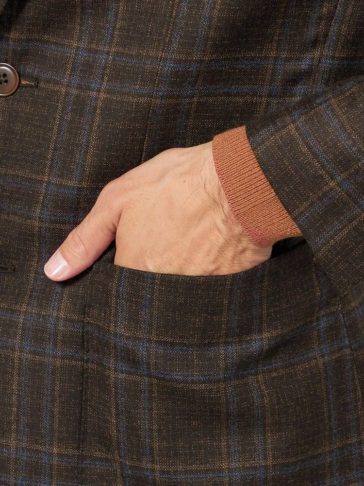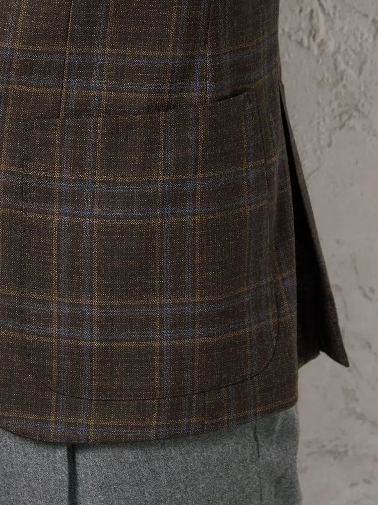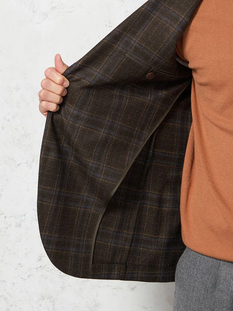 【ウール100%】ジャケット2つボタン【REDA】イタリアインポート素材軽量仕立てチェックブラウンRUCKENBACCHAR秋冬