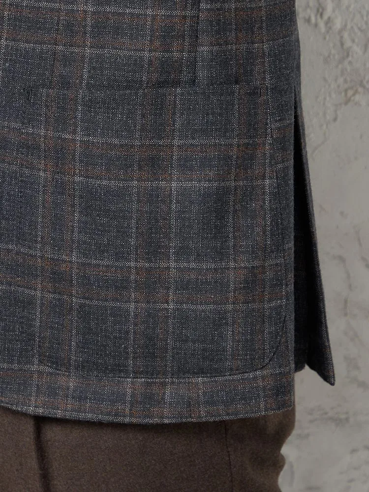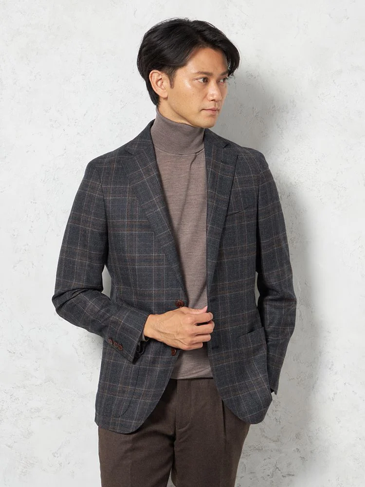 【ウール100%】ジャケット2つボタンイタリアディプライ社製生地チェックグレーRUCKENBACCHAR秋冬
