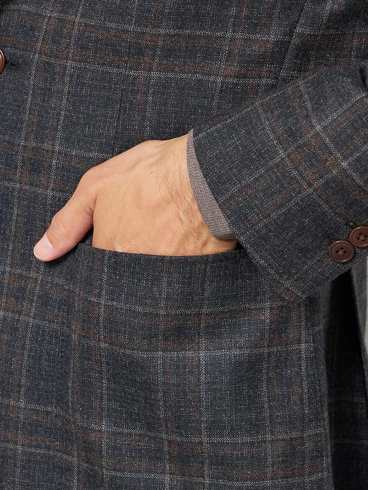【ウール100%】ジャケット 2つボタン【REDAインポート生地】 チェック リッケンバッカー 秋冬(ネイビー)