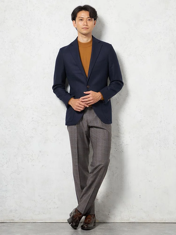 2つボタンのデザインで、クラシックなスタイルを演出。落ち着きと品のあるアイテムです。