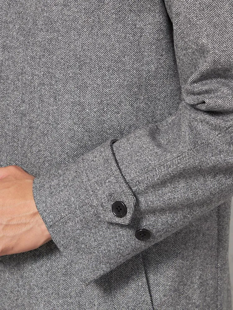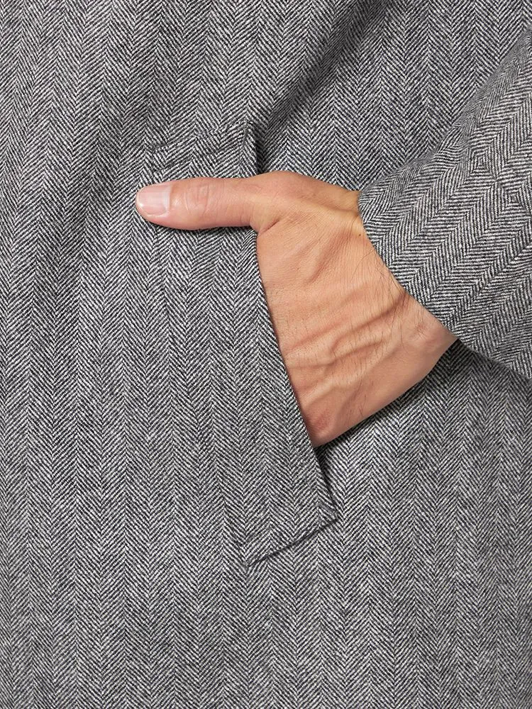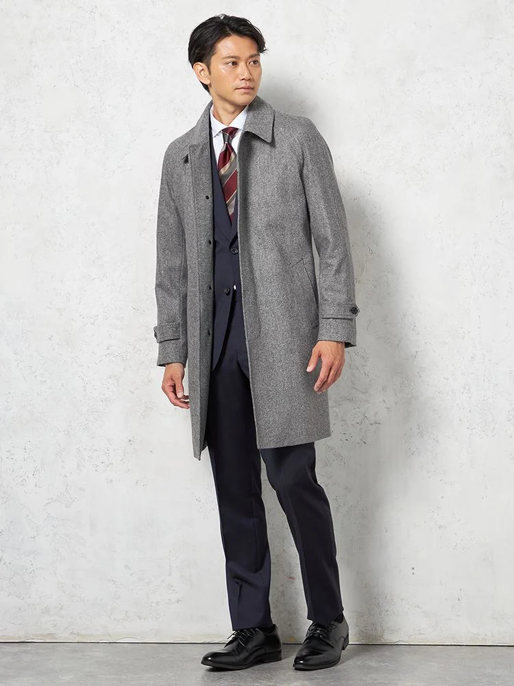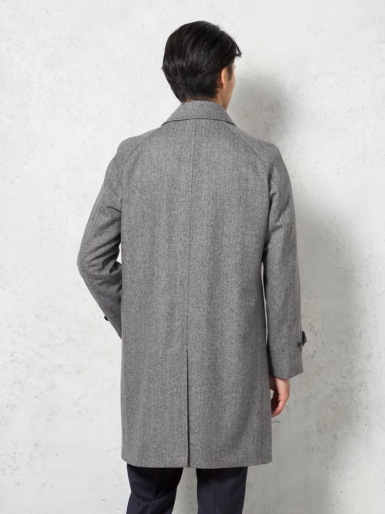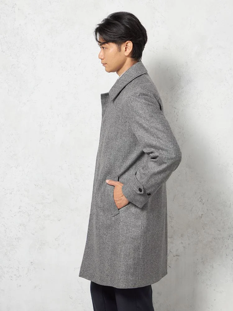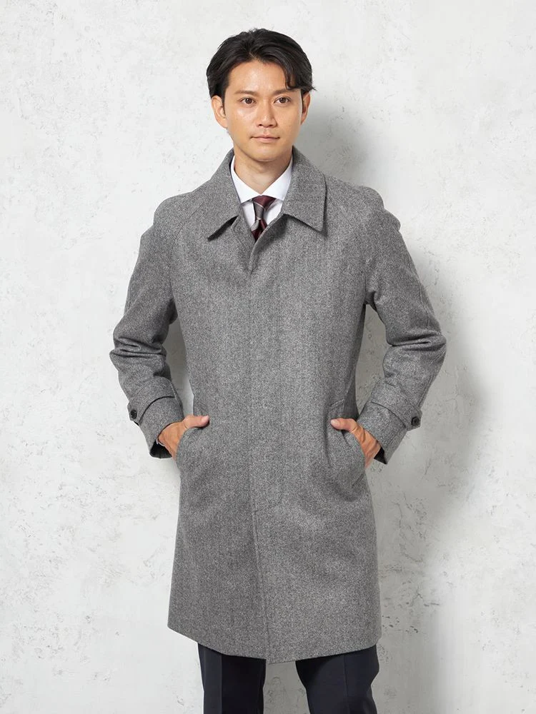 【ウール混】ステンカラーコート 尾州産ウール使用 ラグランスリーブ ヘリンボン リッケンバッカー 秋冬(L.グレー)