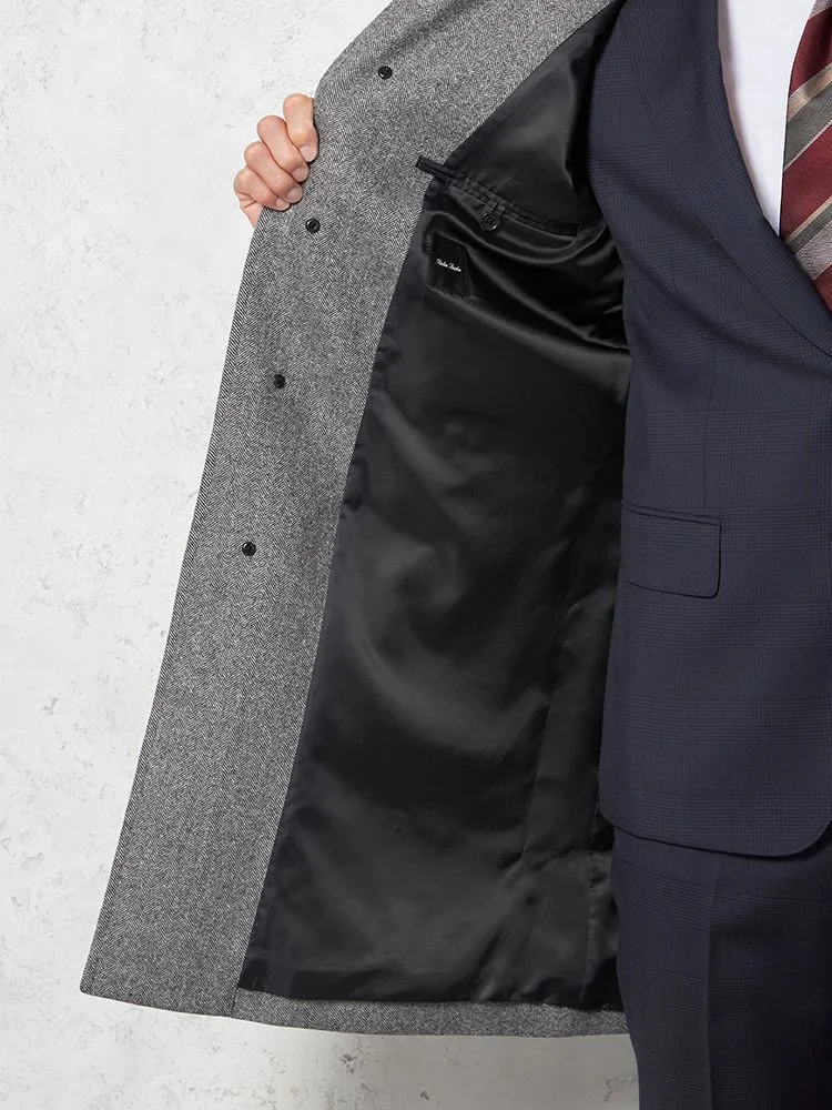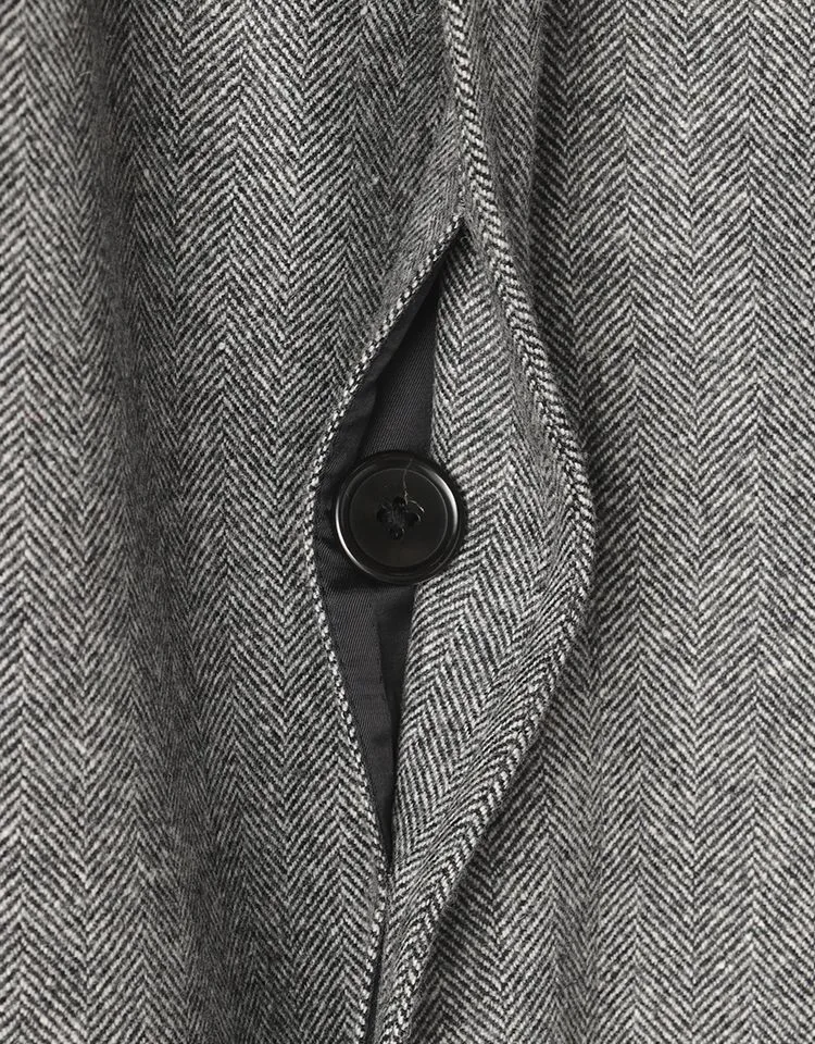 【ウール100%】クラシックベルテッドウールコートベルト付きヘリンボンnero秋冬【スリムデザイン】