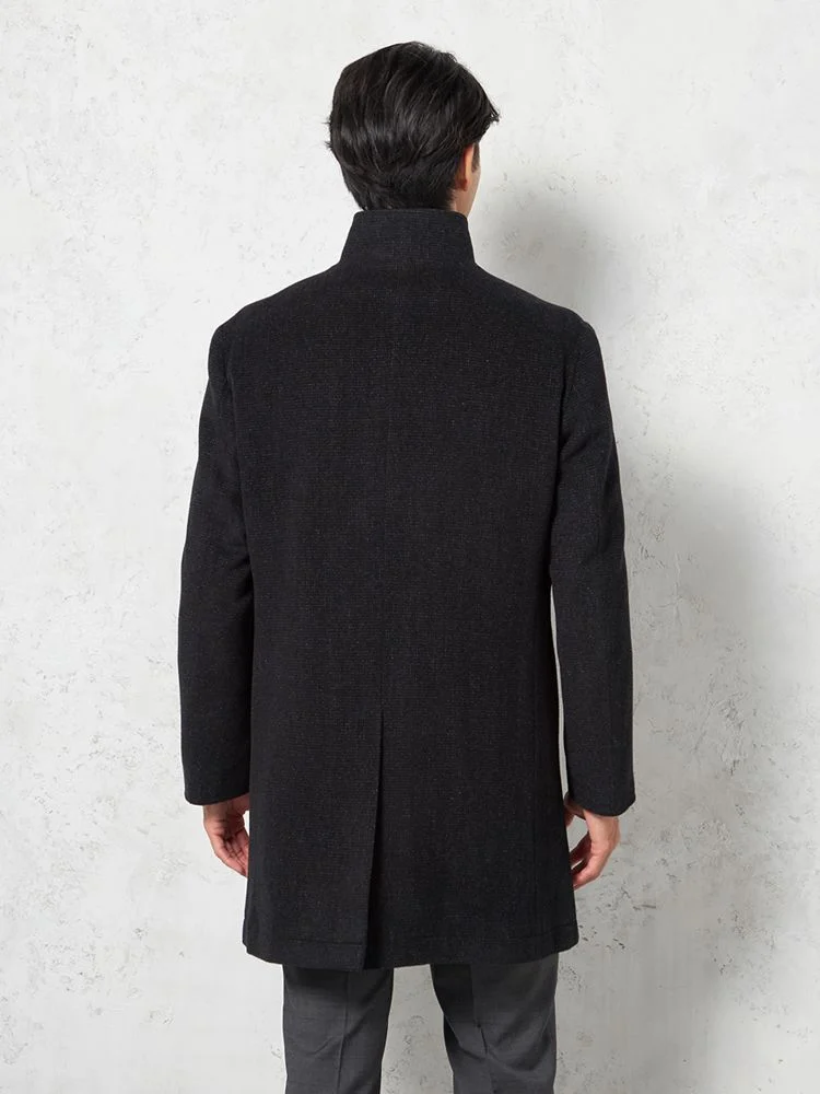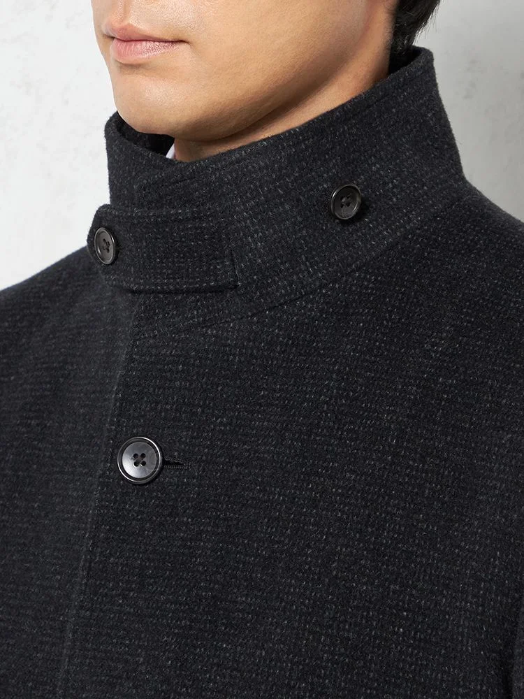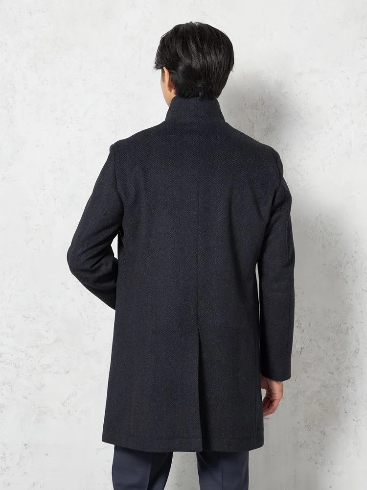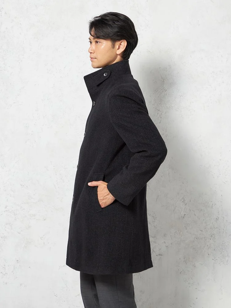 【尾州アンゴラ混素材】スタンドカラーコート ミドル丈 織柄無地 STOVEL&MASON 秋冬(C.グレー)