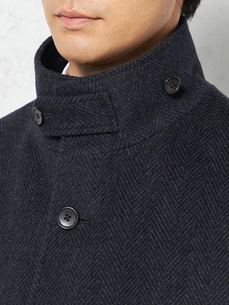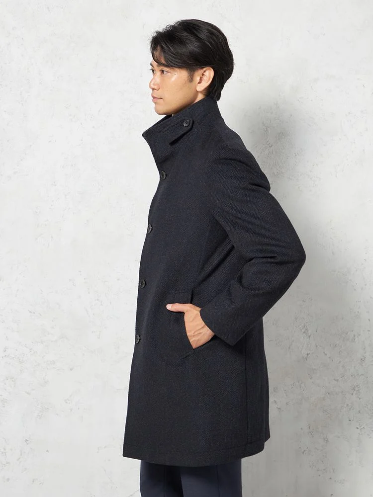 【ウール混】ステンカラーコート尾州産ウール使用ラグランスリーブヘリンボンリッケンバッカー秋冬