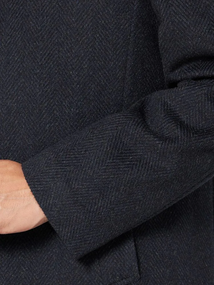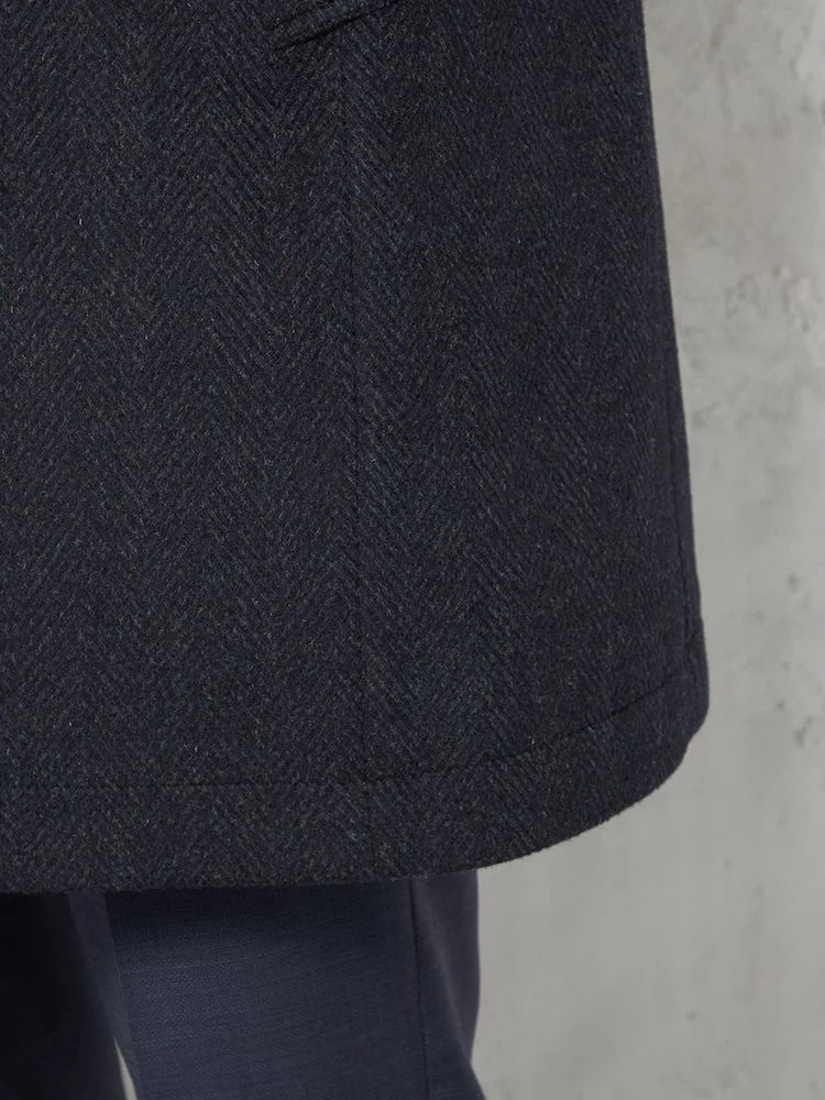 【ウール100%】クラシックベルテッドウールコートベルト付きヘリンボンnero秋冬【スリムデザイン】