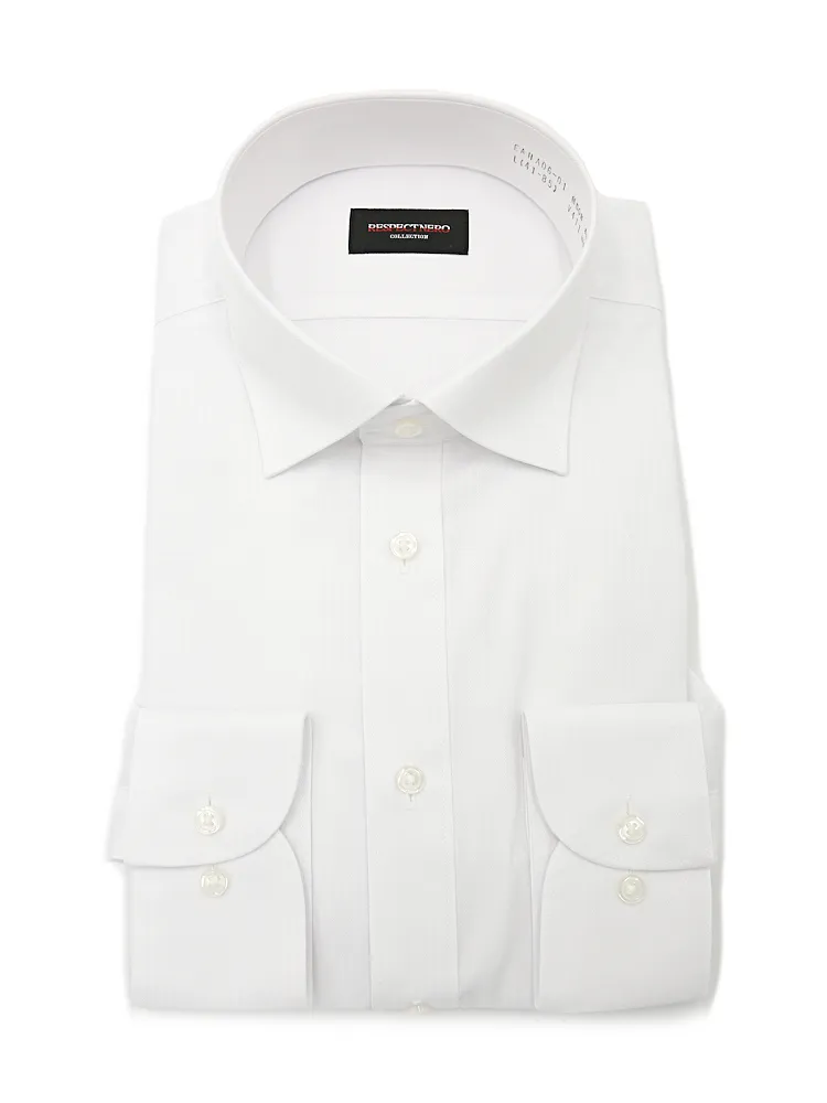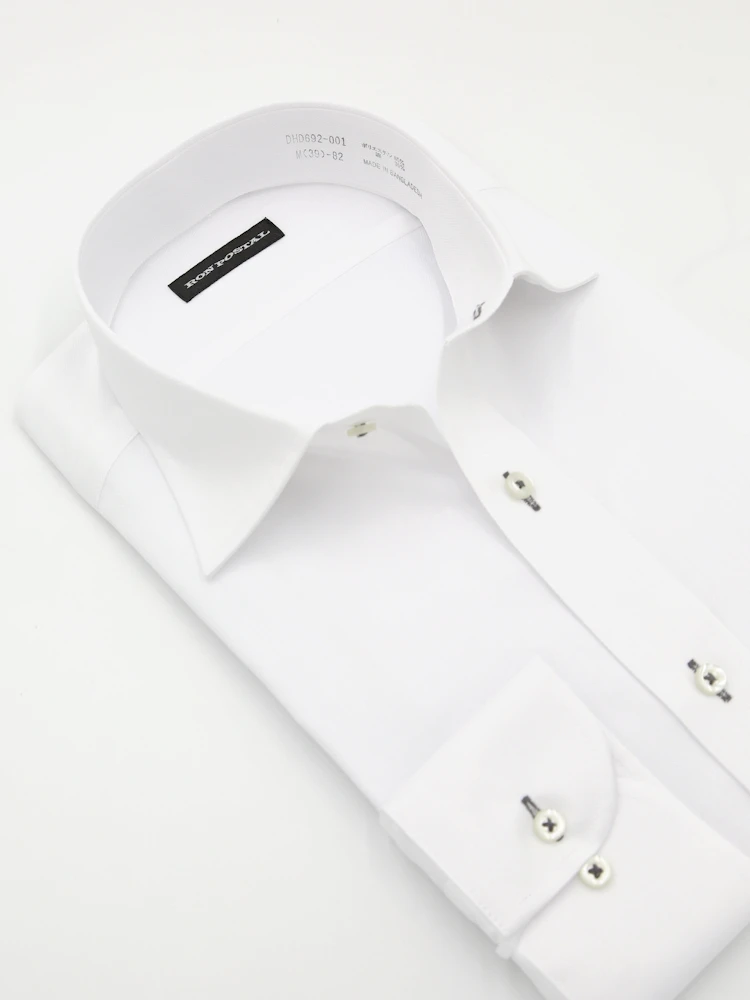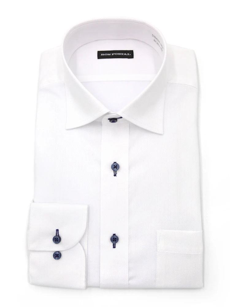 【形態安定】長袖 ワイシャツ セミワイド イージーケア 白ドビー RON POSTAL 通年(ホワイト)