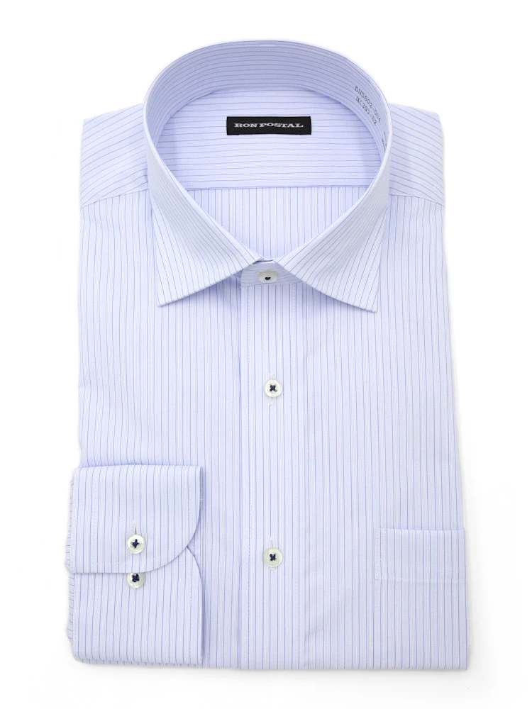 【形態安定】長袖 ワイシャツ セミワイド イージーケア ストライプ RON POSTAL 通年