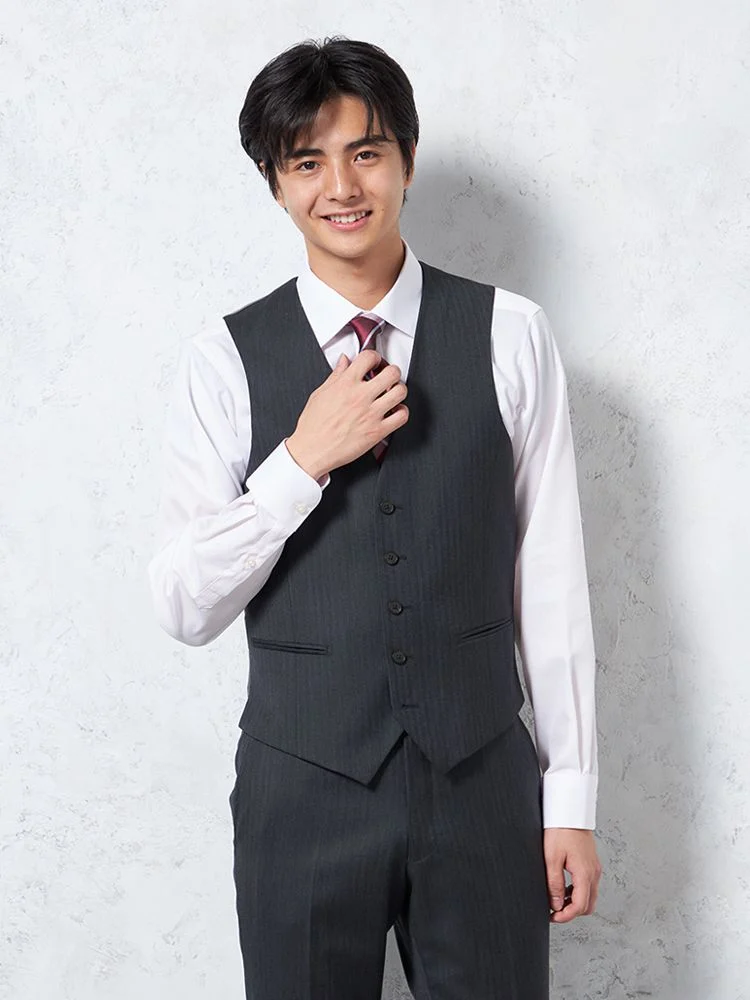 ジャケット、パンツ、ベストの3点セットで、スーツ全体を簡単にコーディネートできます。ビジネスやフォーマルな場面に最適です。