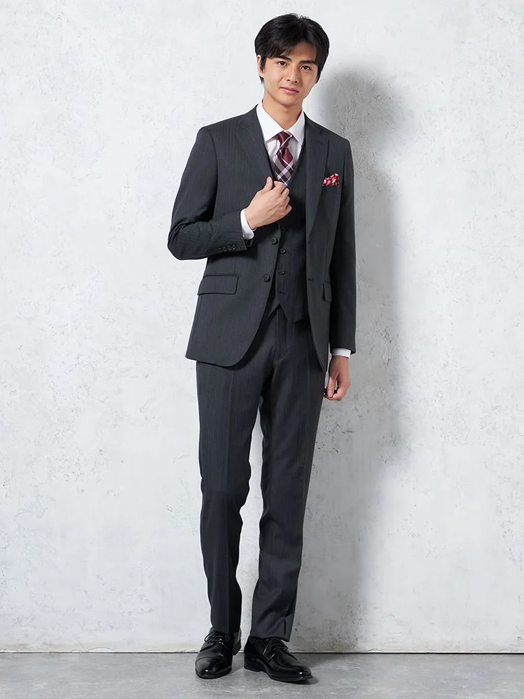 【即納】【WEB限定】スリーピーススーツ2つボタンヘリンボン上下ウォッシャブル3シーズン対応
