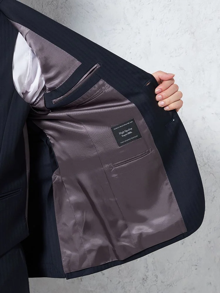 【即納】【WEB限定】スーツ2つボタンネイビーシャドウストライプ上下ウォッシャブル3シーズン対応