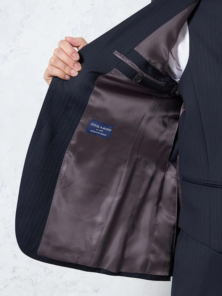 【ウール混】スリーピーススーツ 2つボタン キュプラ裏地 シャドウストライプ S&M BLUE LABEL